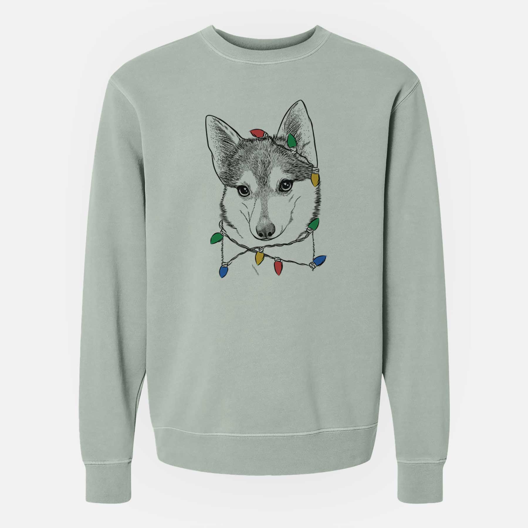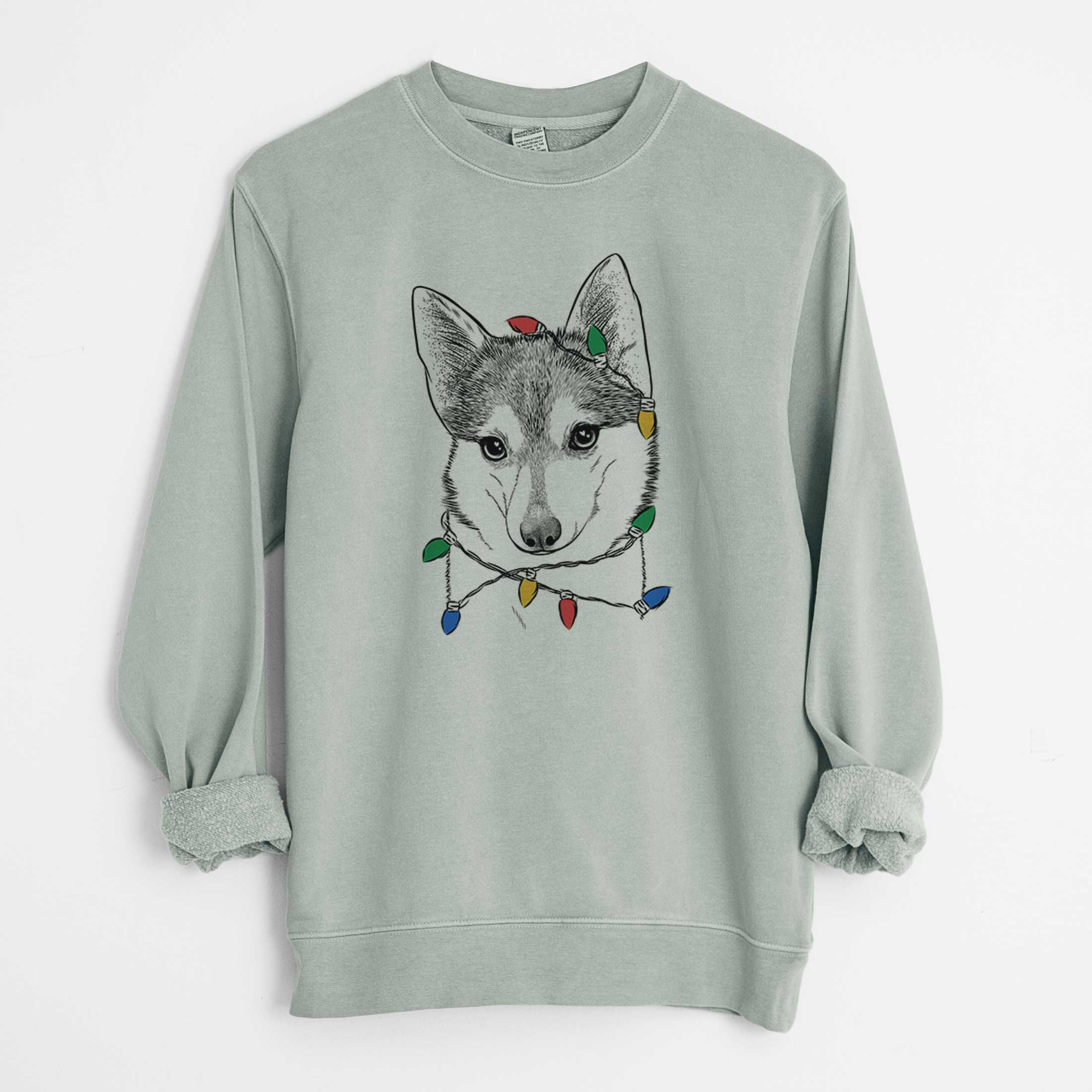 Christmas Lights Nami the Alaskan Klee Kai - Unisex Pigment Dyed Crew Sweatshirt