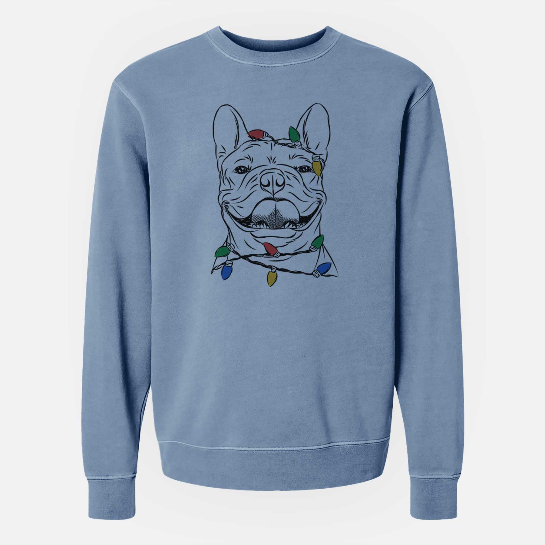 Christmas Lights Gaston the French Bulldog - Unisex Pigment Dyed Crew Sweatshirt