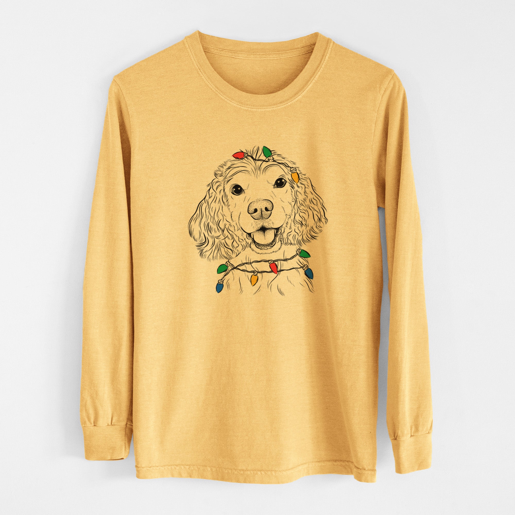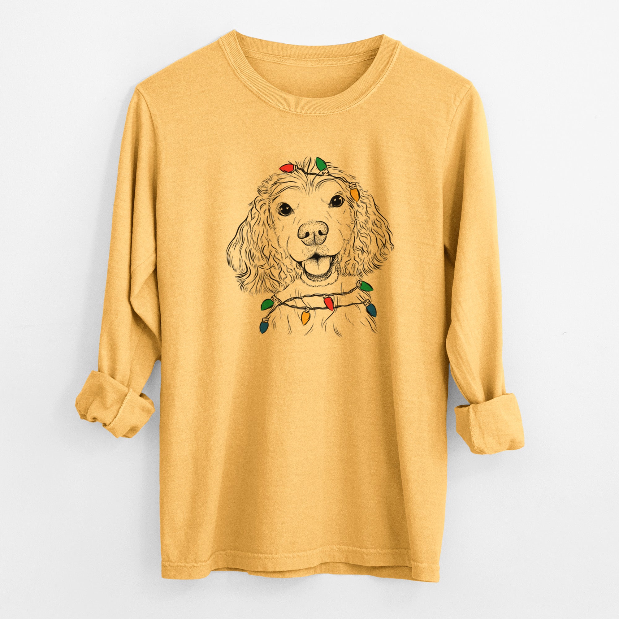 Christmas Lights Cricket the American Cocker Spaniel - Heavyweight 100% Cotton Long Sleeve