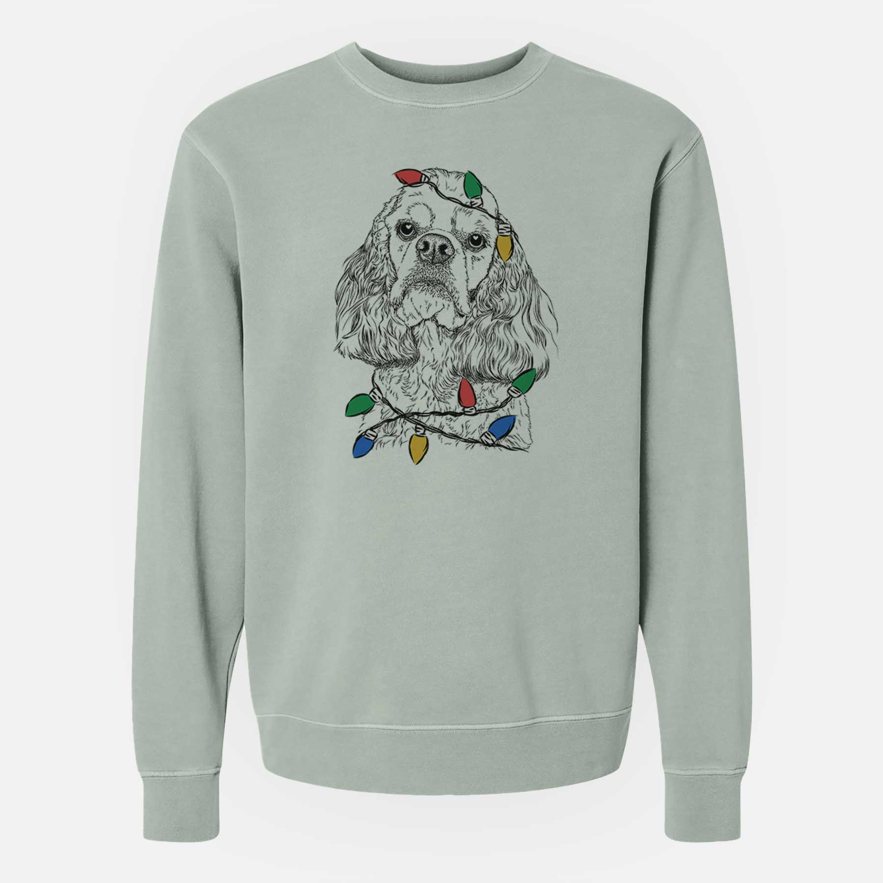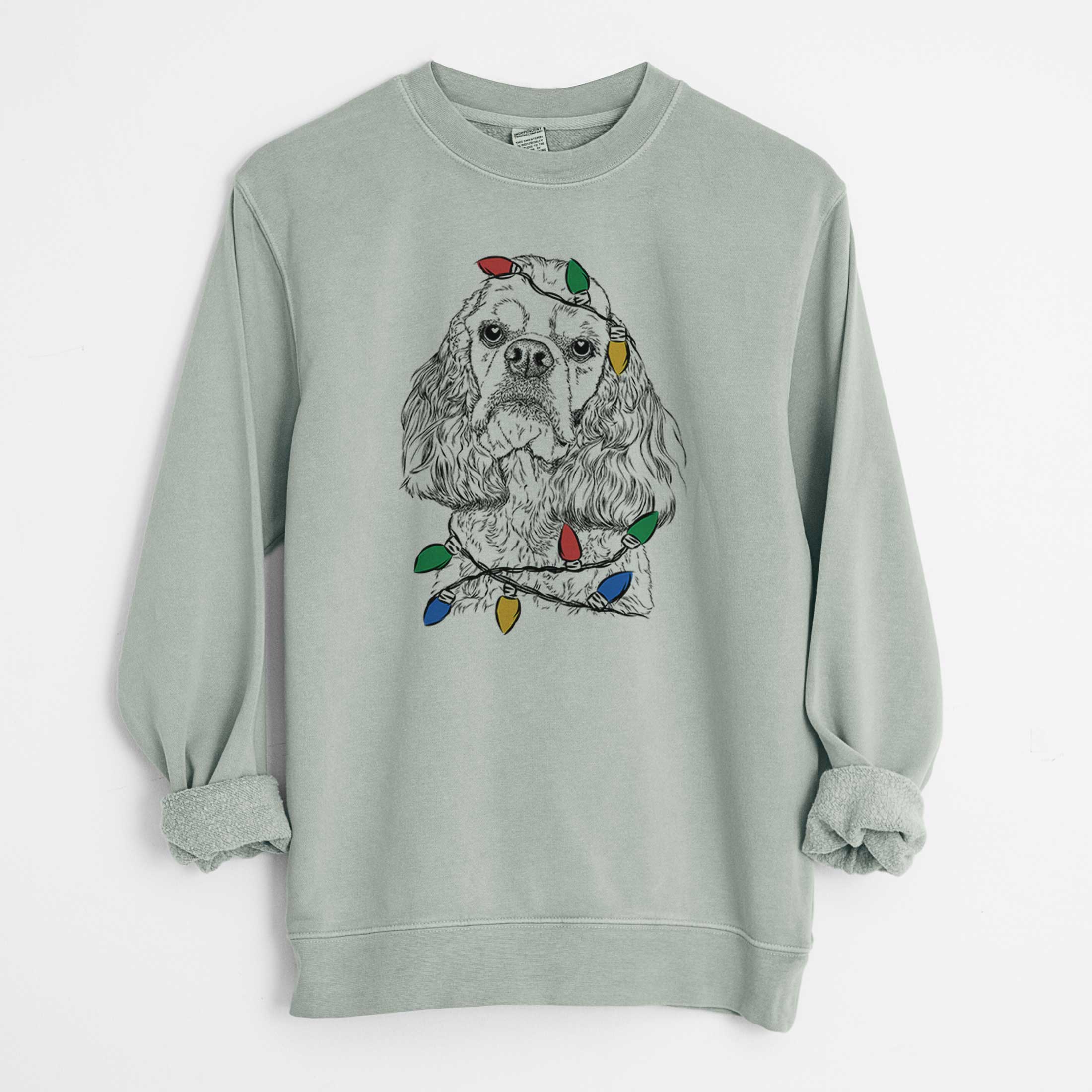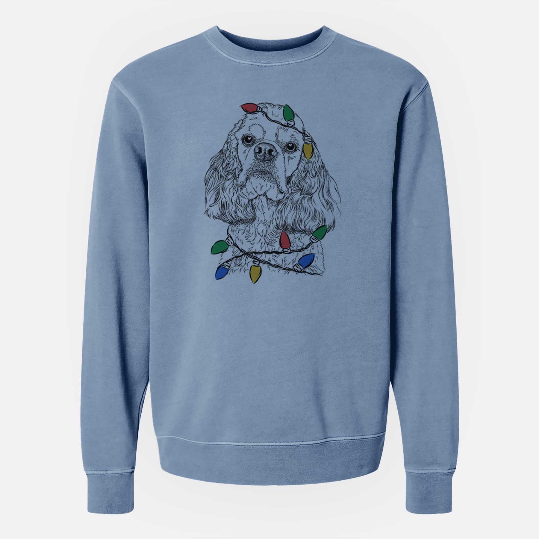 Christmas Lights Bailey the American Cocker Spaniel - Unisex Pigment Dyed Crew Sweatshirt