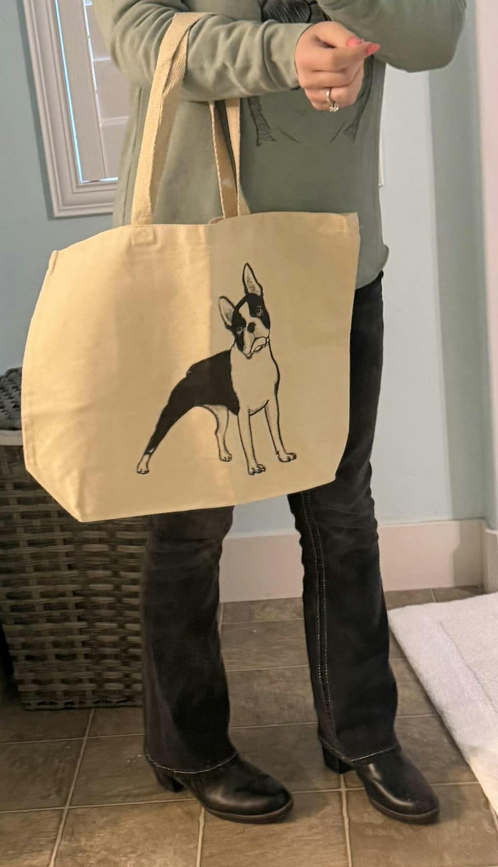 This hoodie is a standard fit and is meant to fit loose. If you prefer the fit of our slim fit french terry hoodies, we recommend sizing down 1 size.