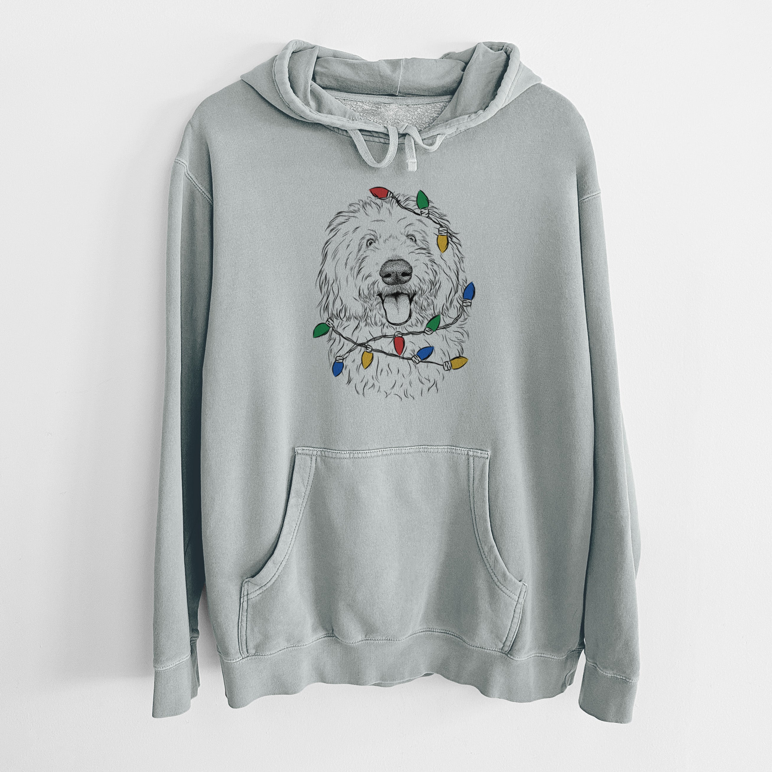 Christmas Lights Barry the Old English Sheepdog - Unisex Pigment Dyed Hoodie