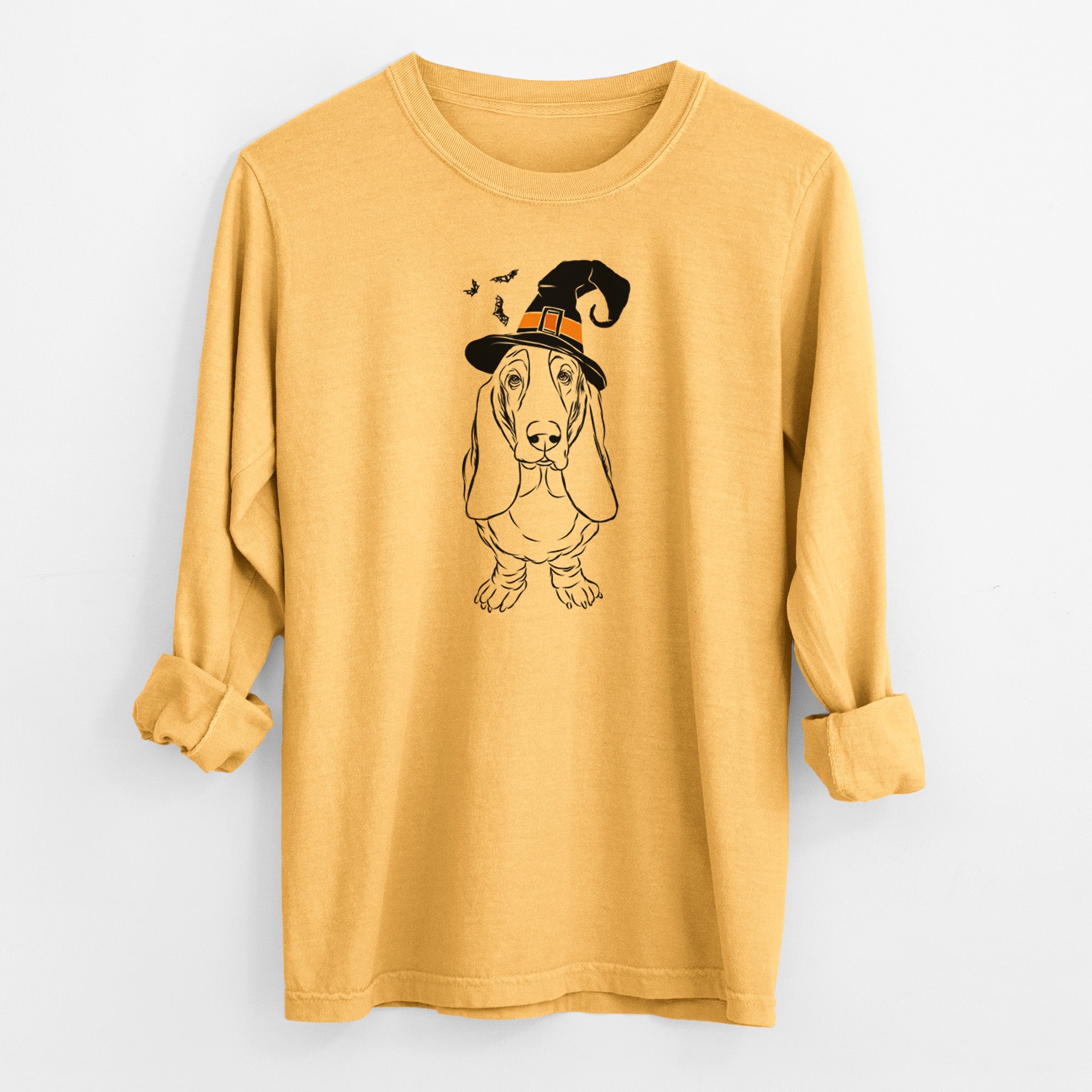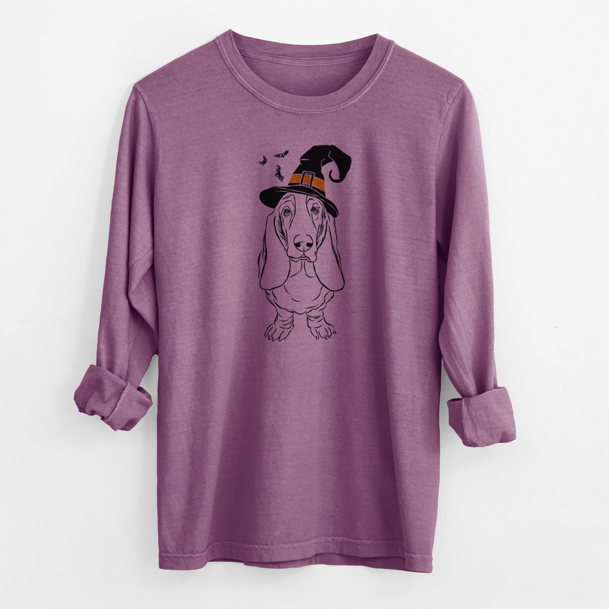 Witch Charlie the Basset Hound - Men's Heavyweight 100% Cotton Long Sleeve