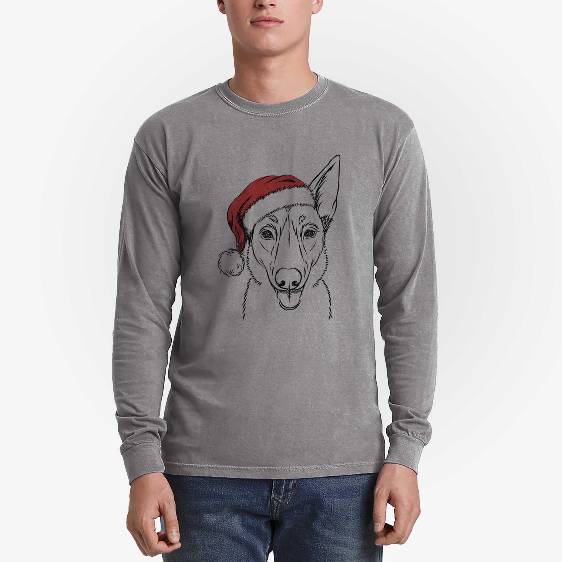 Santa Lyric the Belgian Malinois - Men's Heavyweight 100% Cotton Long Sleeve