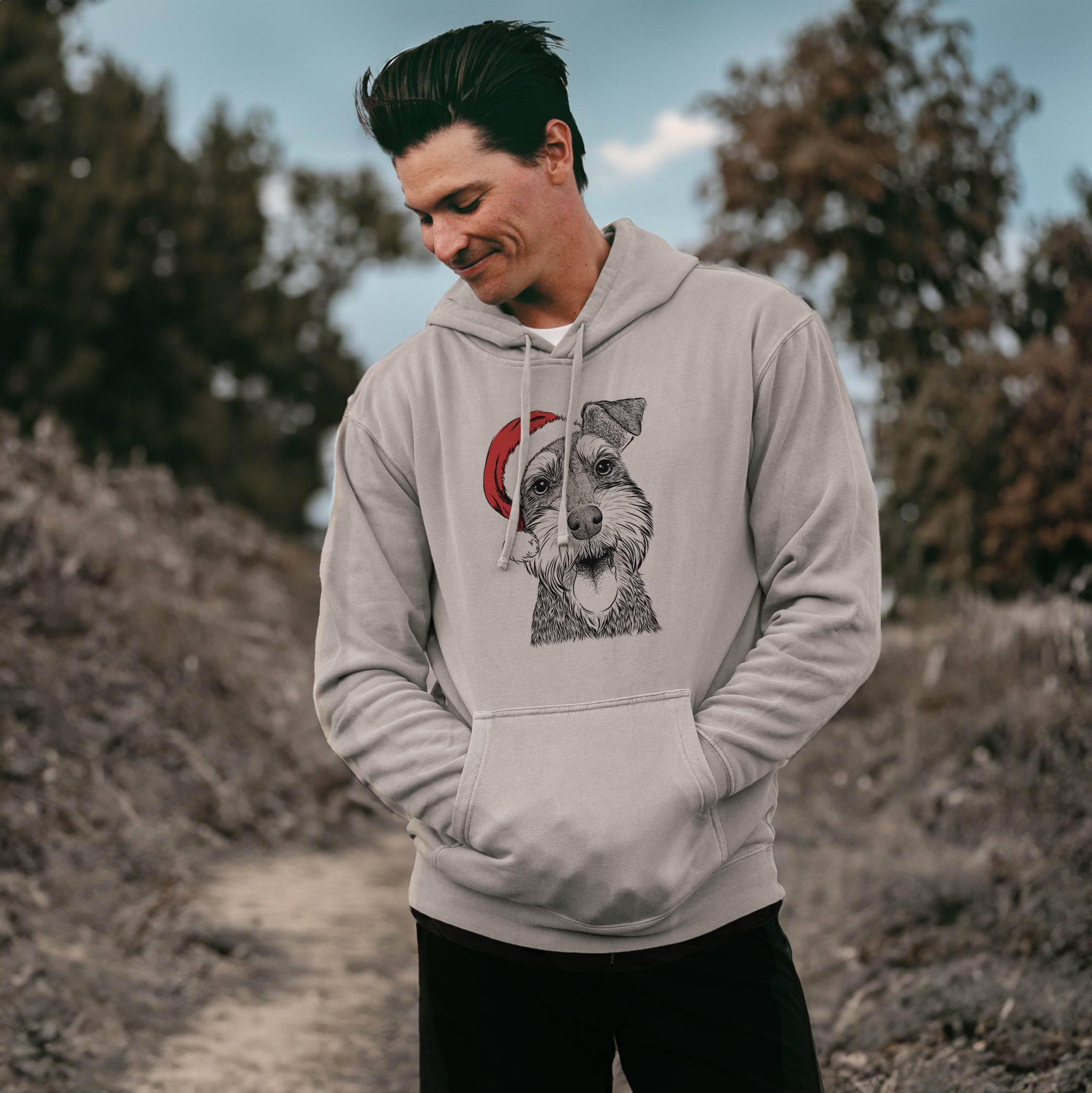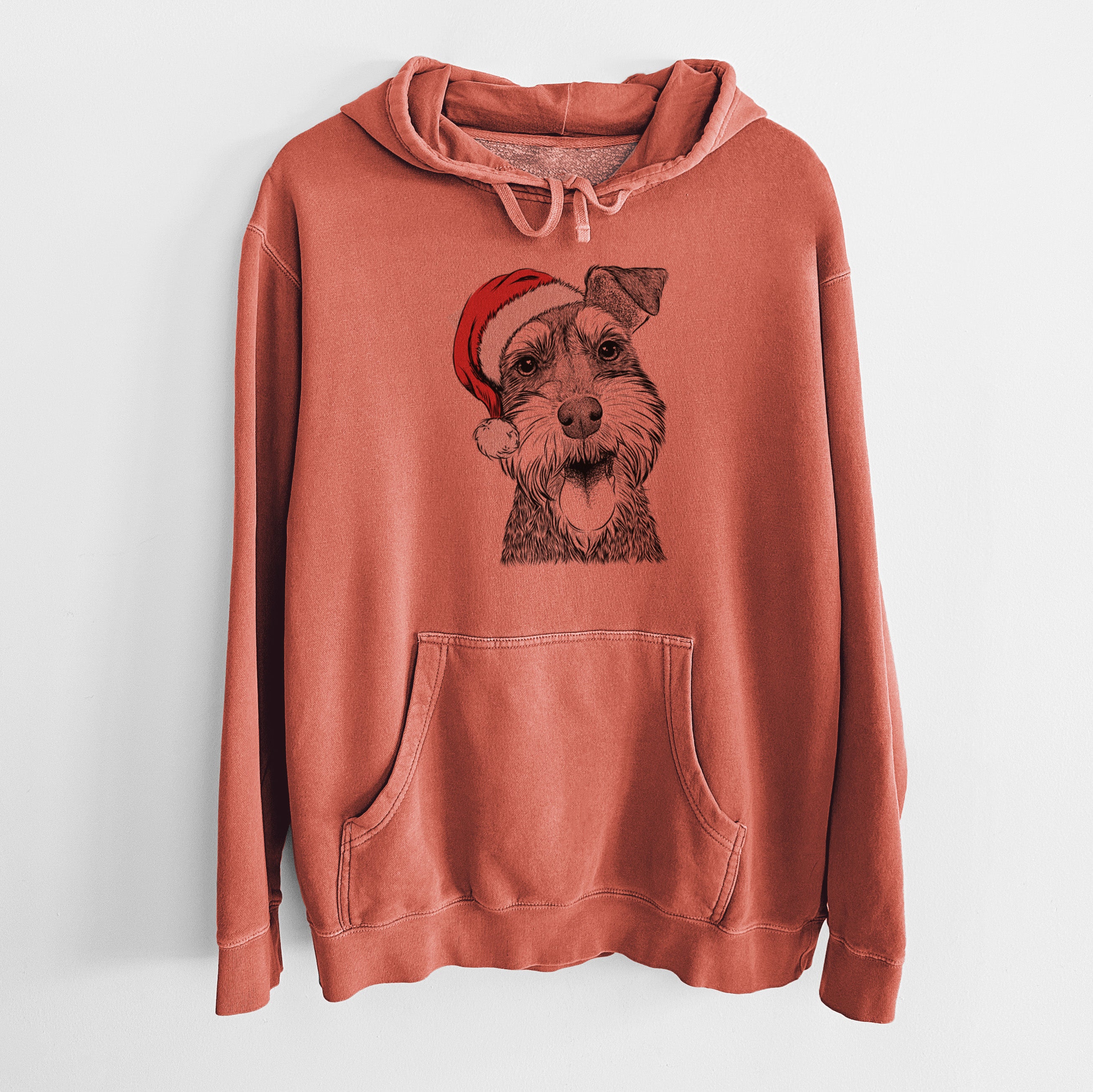 Santa Hat Bernadette the Mini Schnauzer - Unisex Pigment Dyed Hoodie