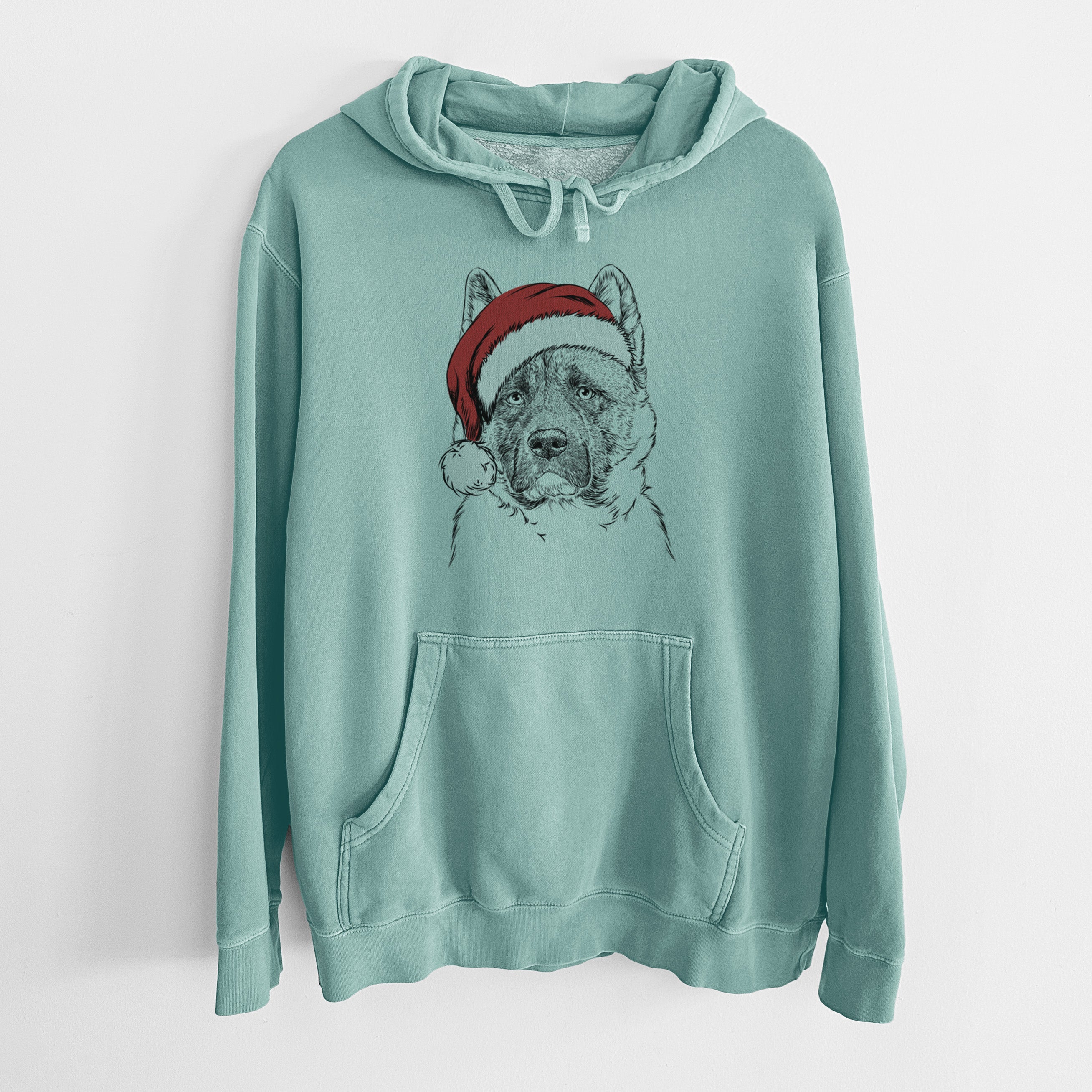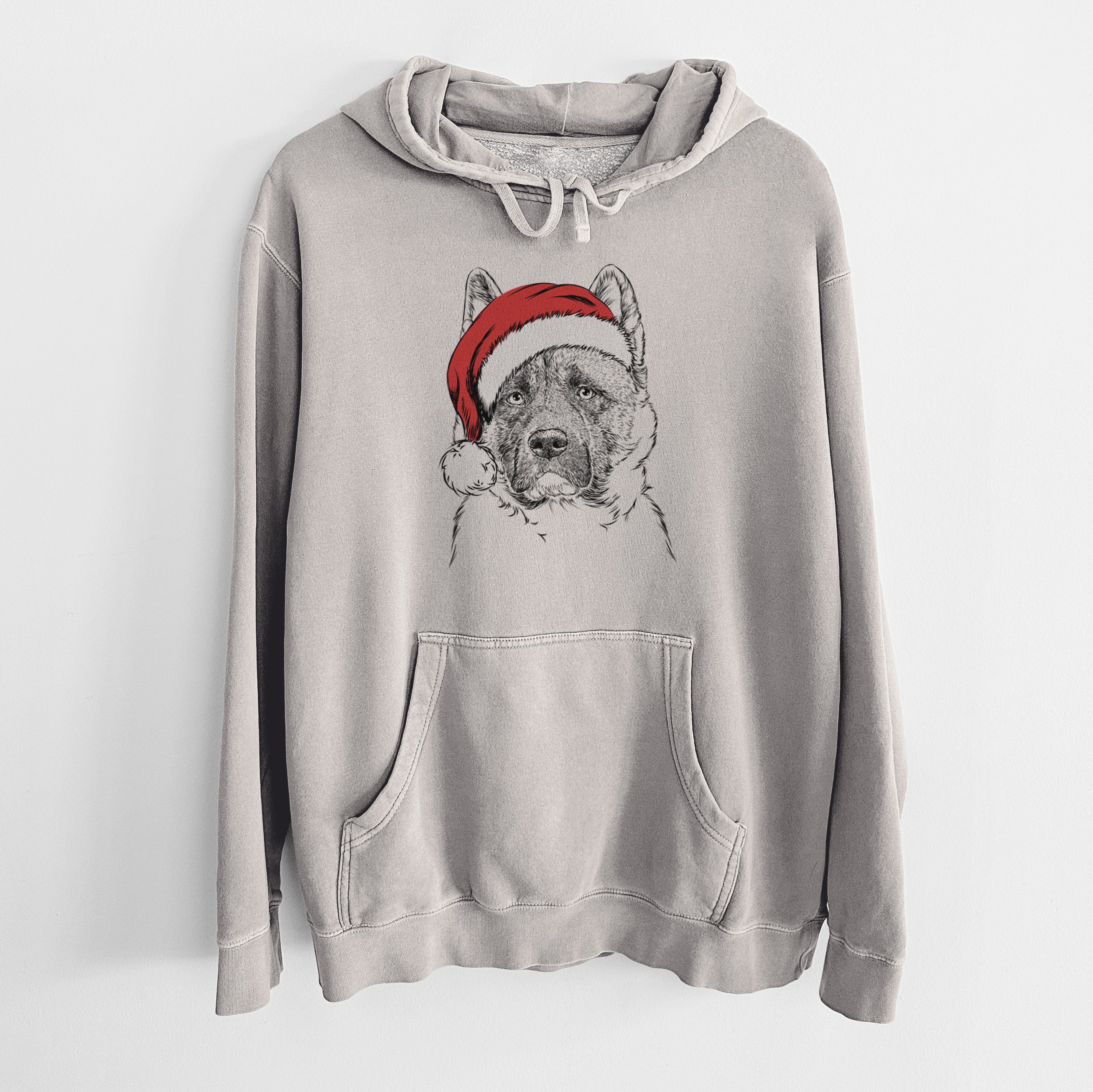 Santa Hat Bo the American Akita - Unisex Pigment Dyed Hoodie