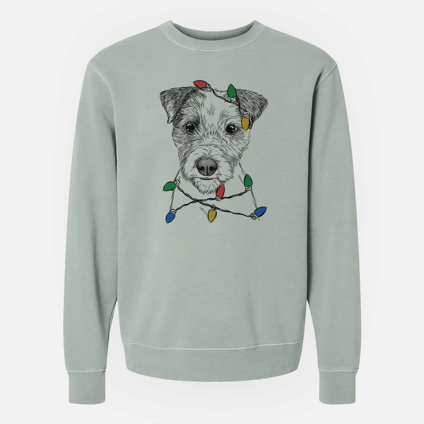 Christmas Lights Bogart the Parson Russell Terrier - Unisex Pigment Dyed Crew Sweatshirt