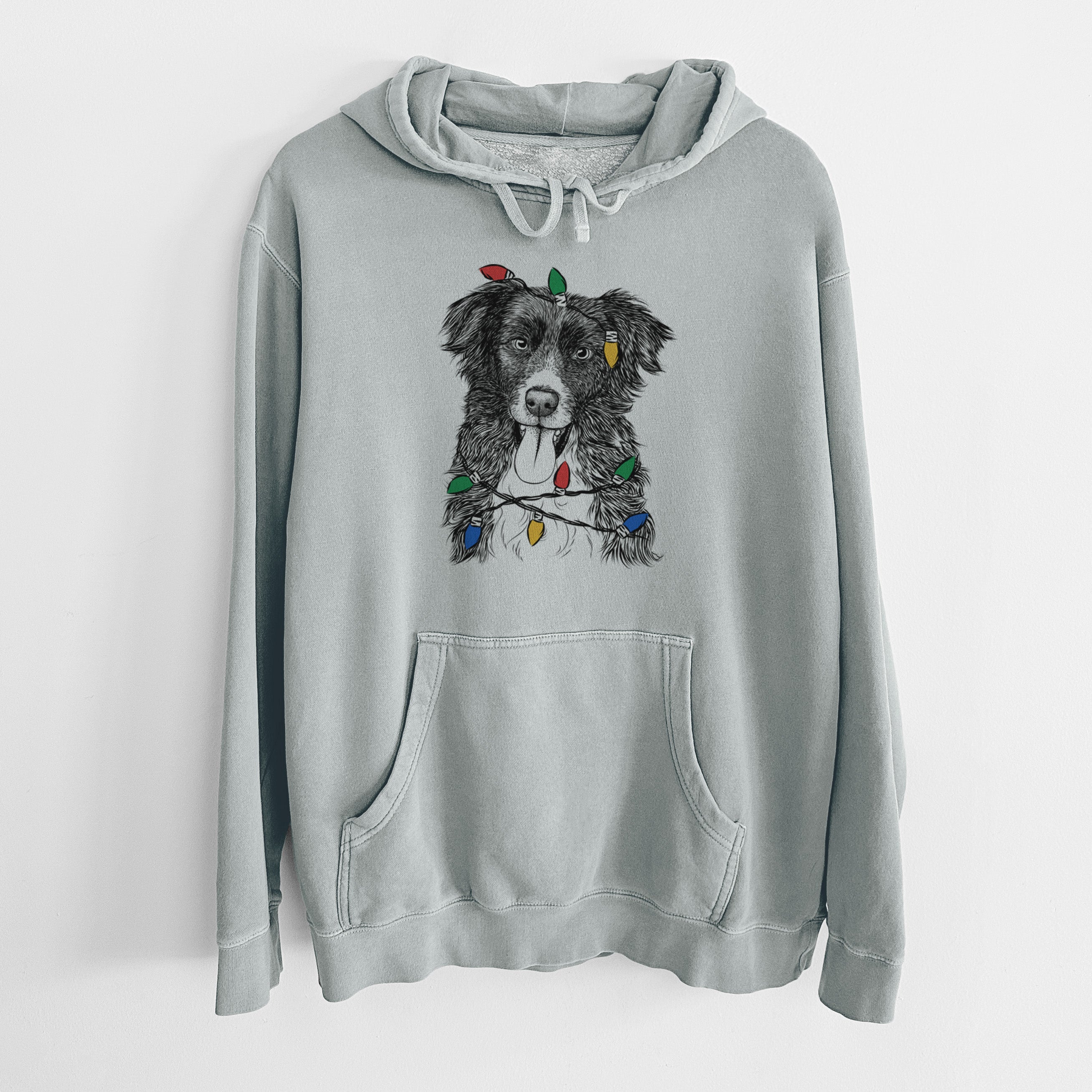 Christmas Lights Indi the Border Collie - Unisex Pigment Dyed Hoodie