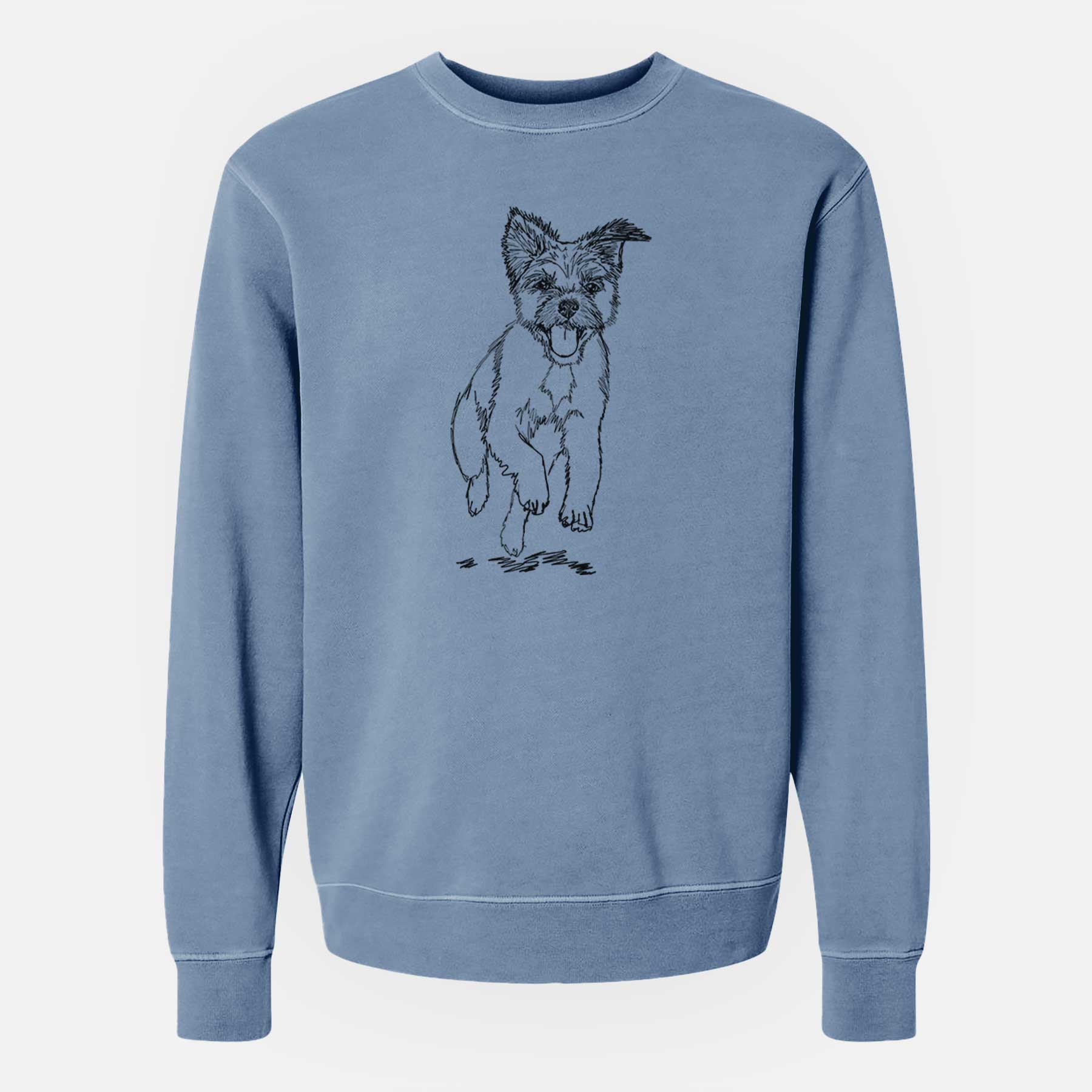 Doodled Elvin the Border Terrier - Unisex Pigment Dyed Crew Sweatshirt