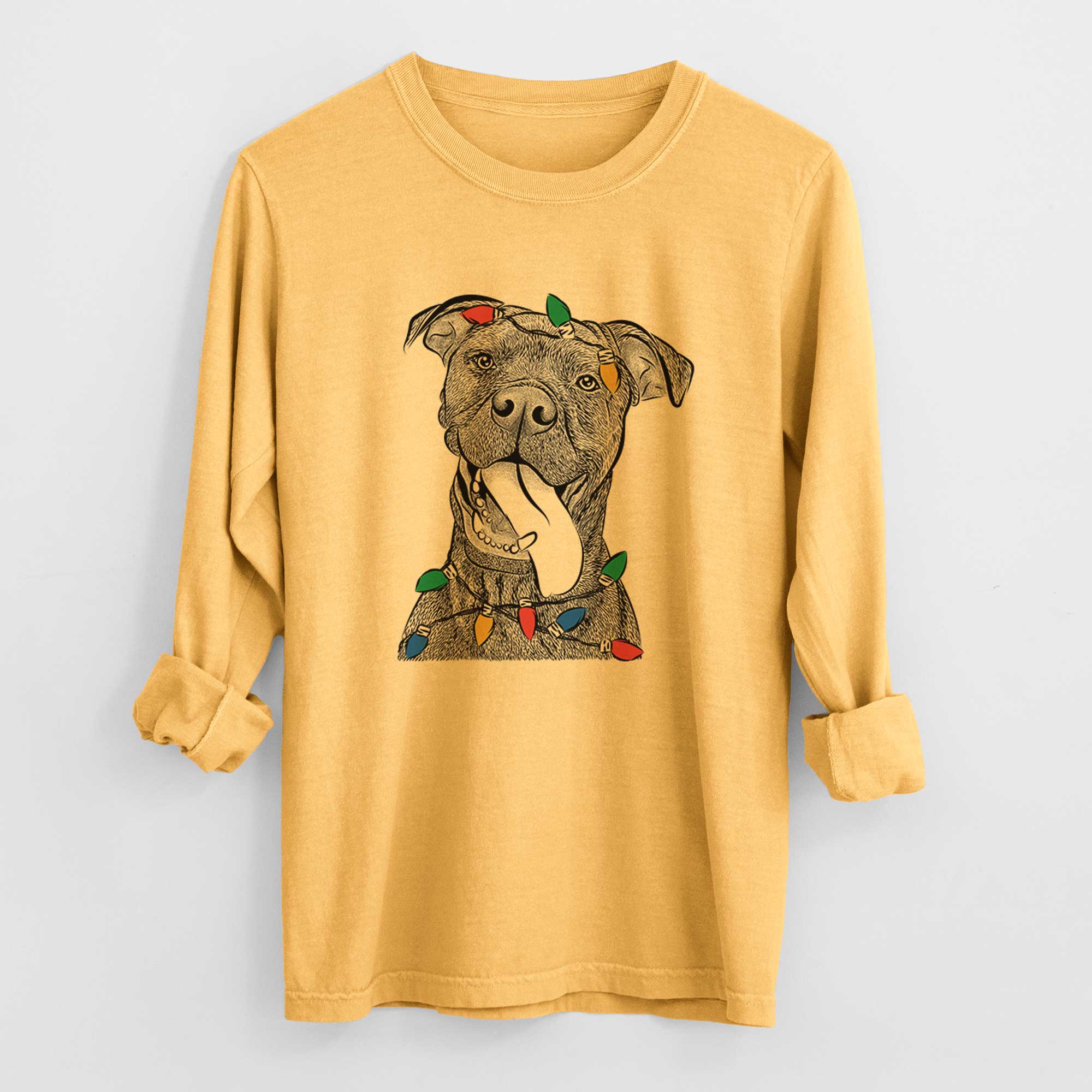 Christmas Lights Mikey the Boxador - Heavyweight 100% Cotton Long Sleeve