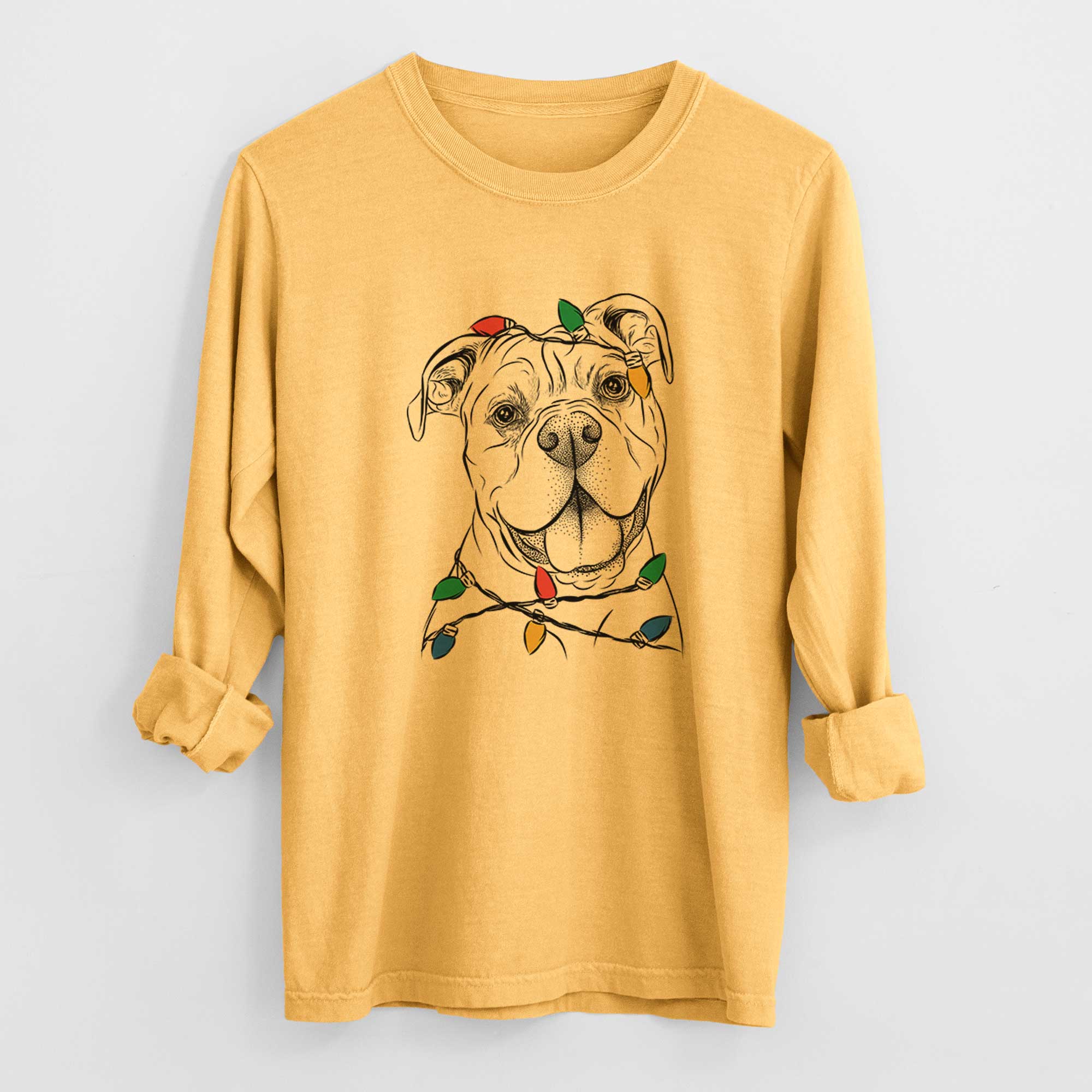 Christmas Lights Bravo the Bulldog Mix - Heavyweight 100% Cotton Long Sleeve