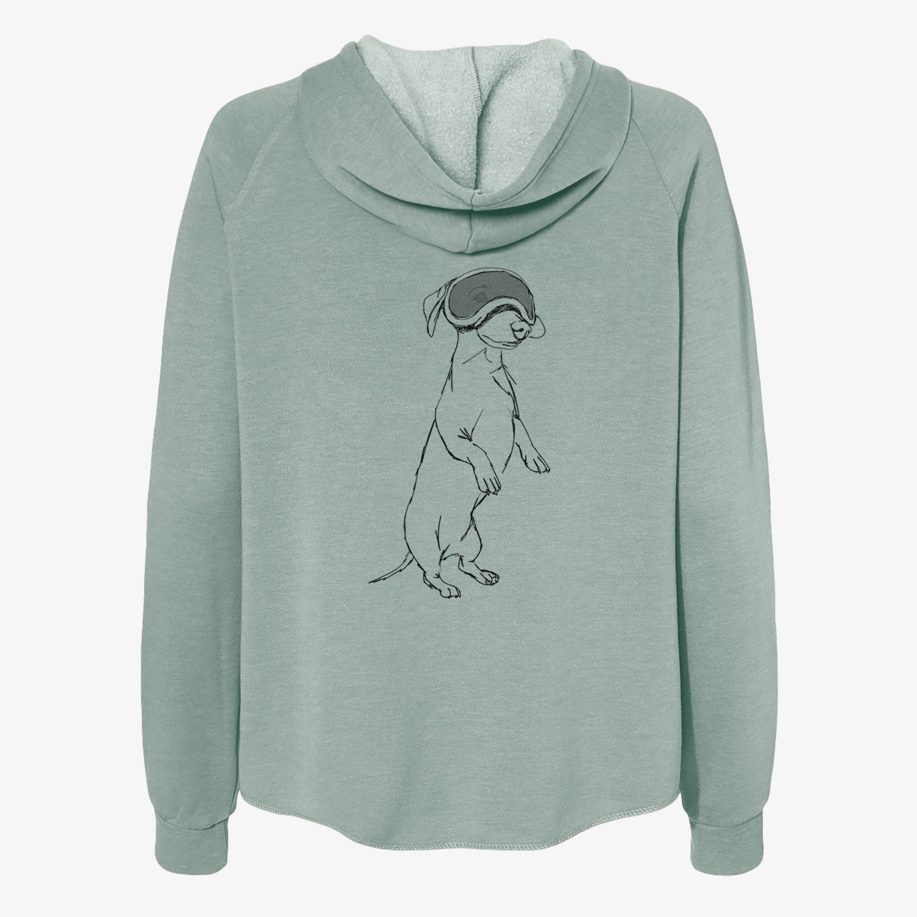 Doodled Moose the Mini Dachshund - Women's Cali Wave Zip-Up Sweatshirt