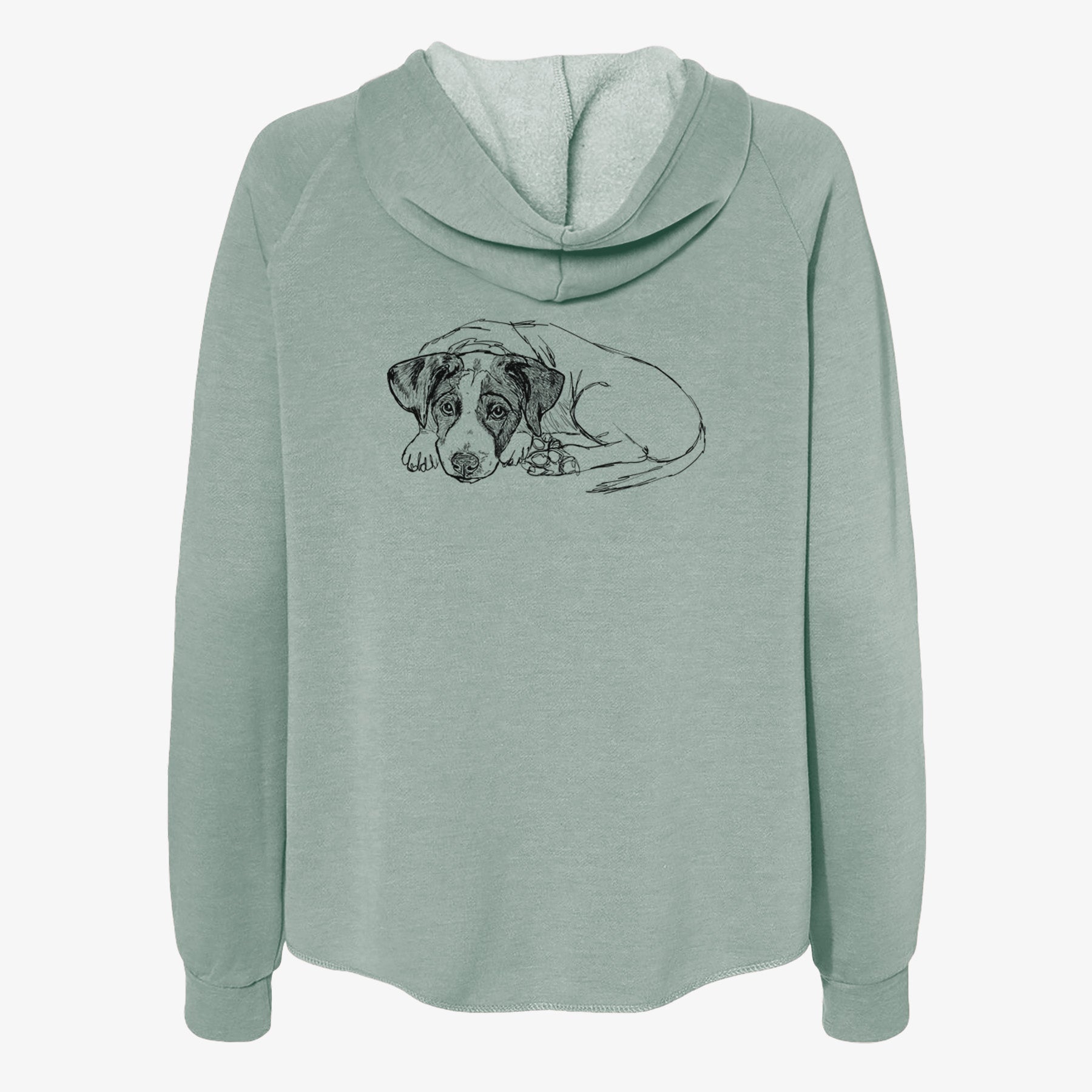 Doodled Stormy the English Pointer Puppy - Women's Cali Wave Zip-Up Sweatshirt