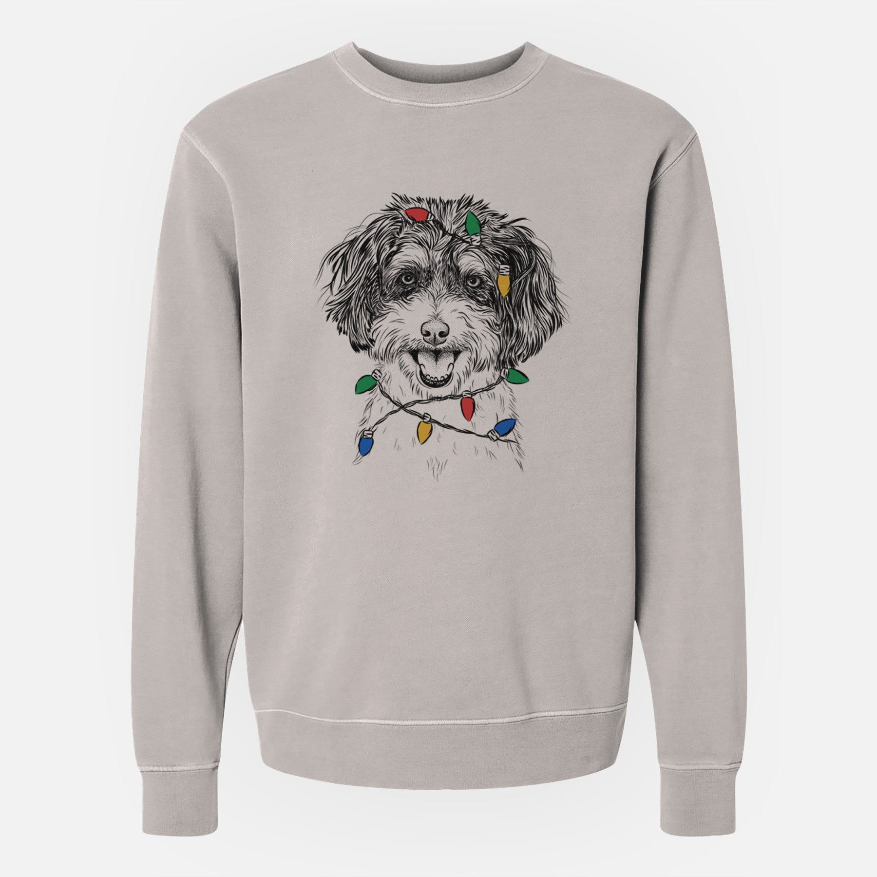 Christmas Lights Carlos the Cavapoo - Unisex Pigment Dyed Crew Sweatshirt