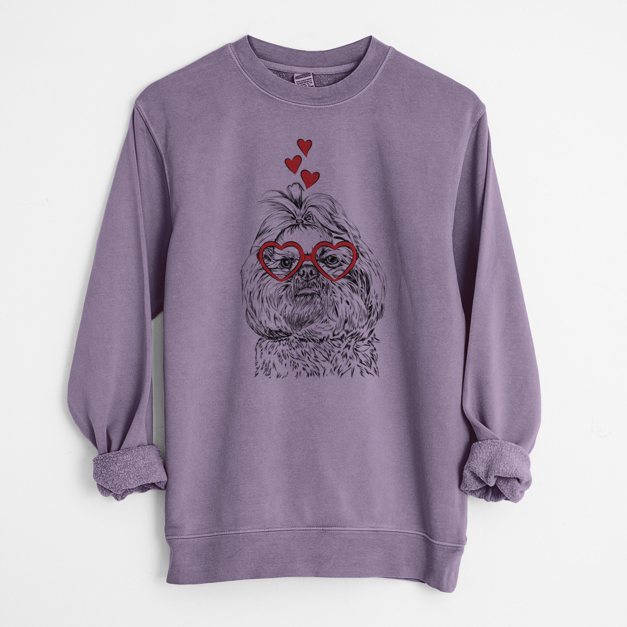 Valentine Chewie the Shih Tzu - Unisex Pigment Dyed Crew Sweatshirt
