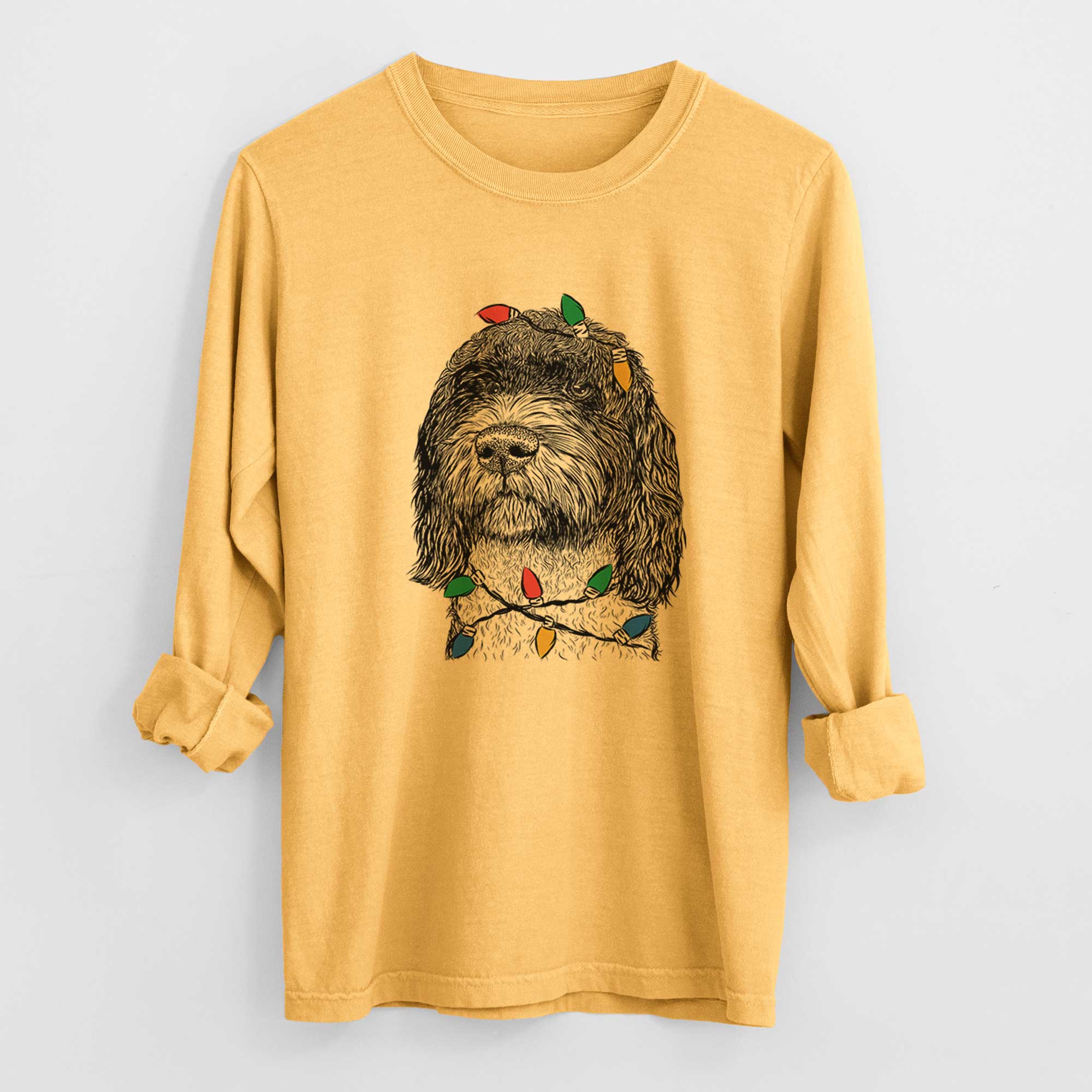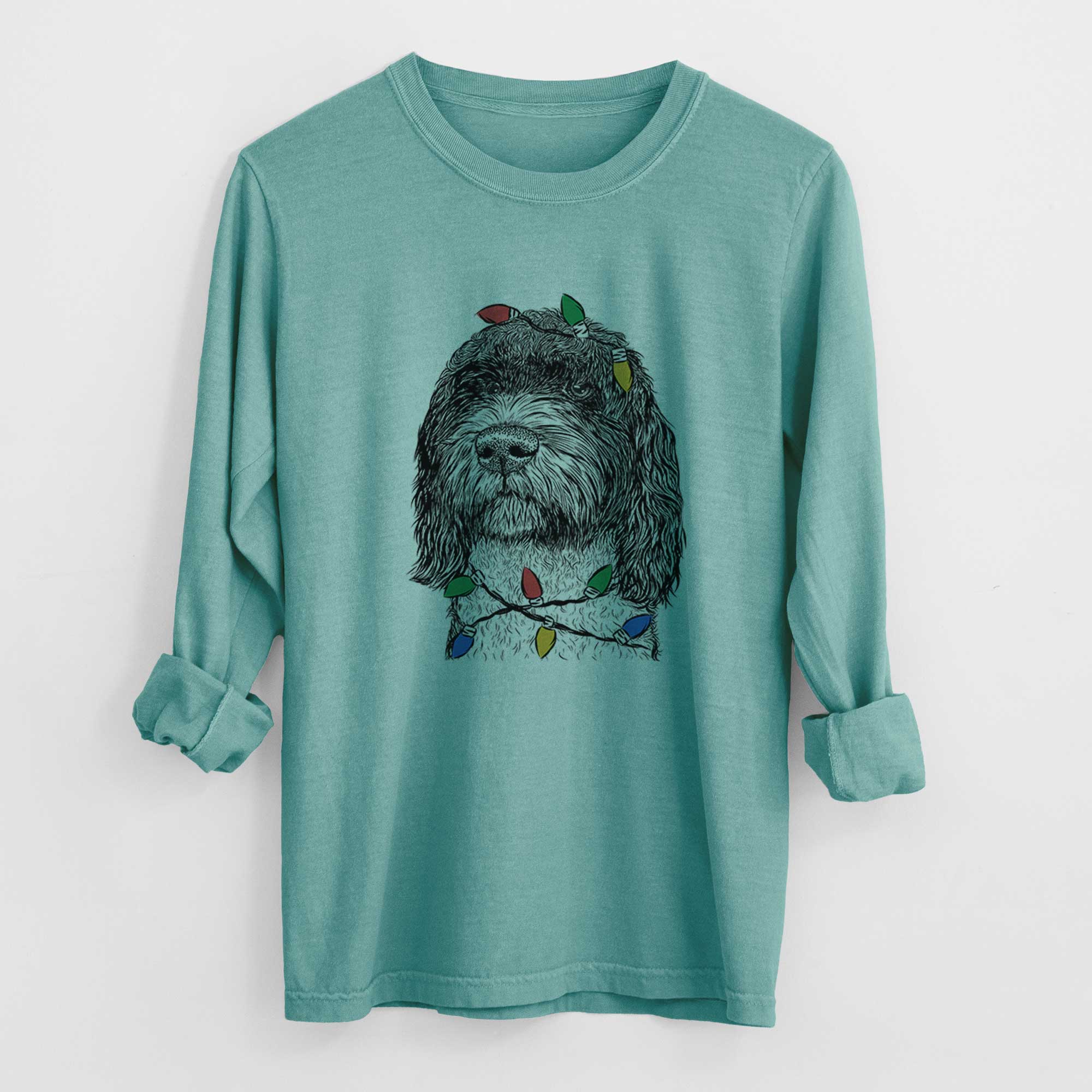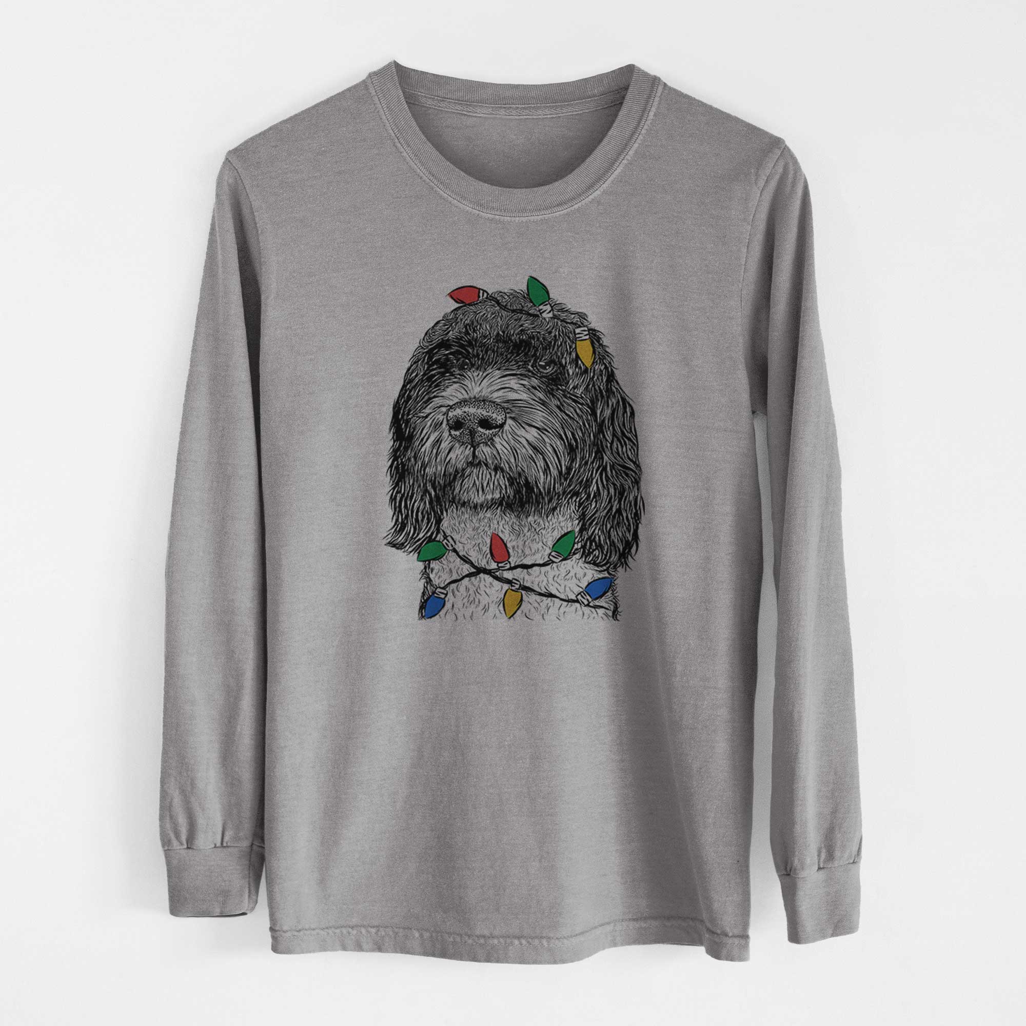 Christmas Lights Chris the Portuguese Water Dog - Heavyweight 100% Cotton Long Sleeve
