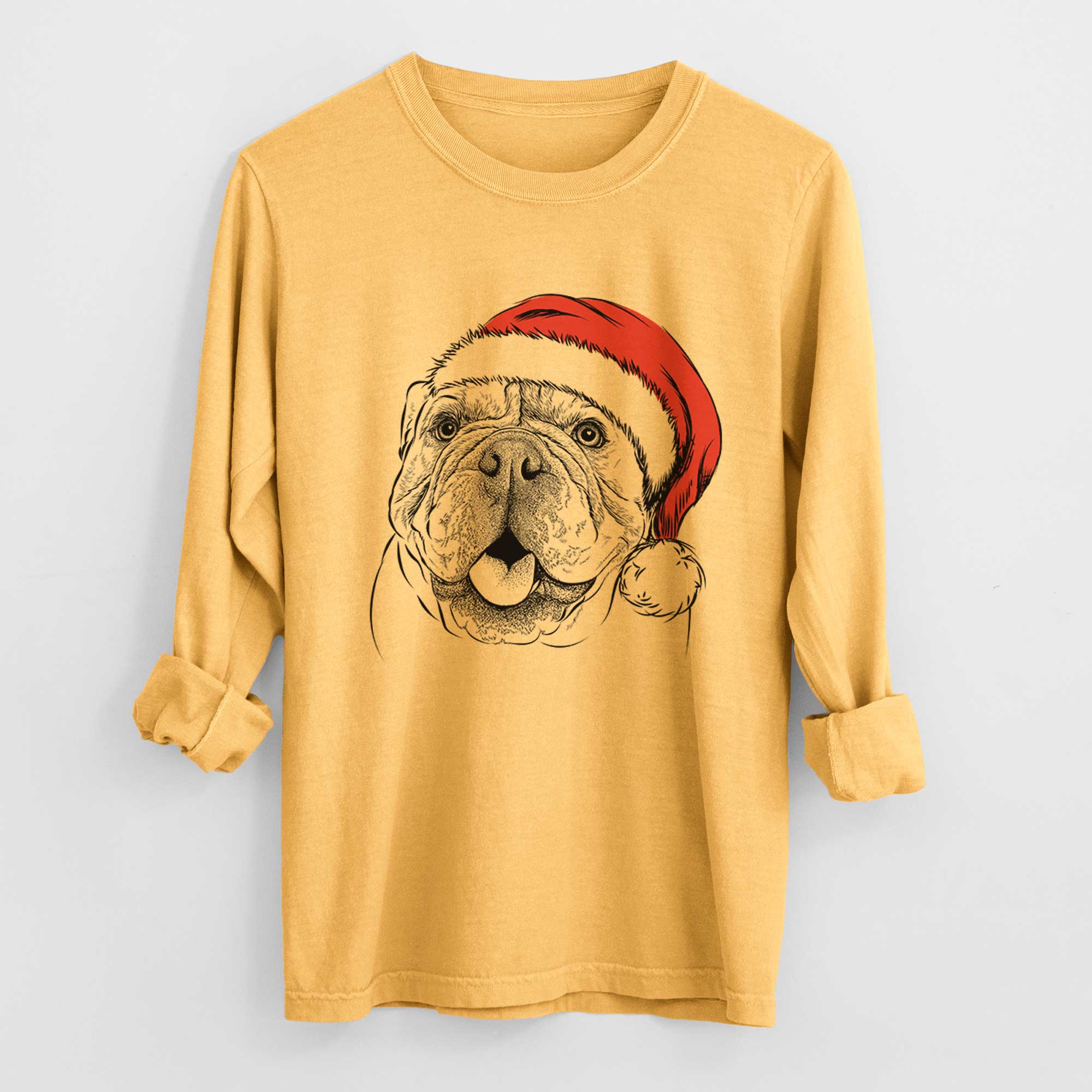 Santa Louie the English Bulldog - Heavyweight 100% Cotton Long Sleeve