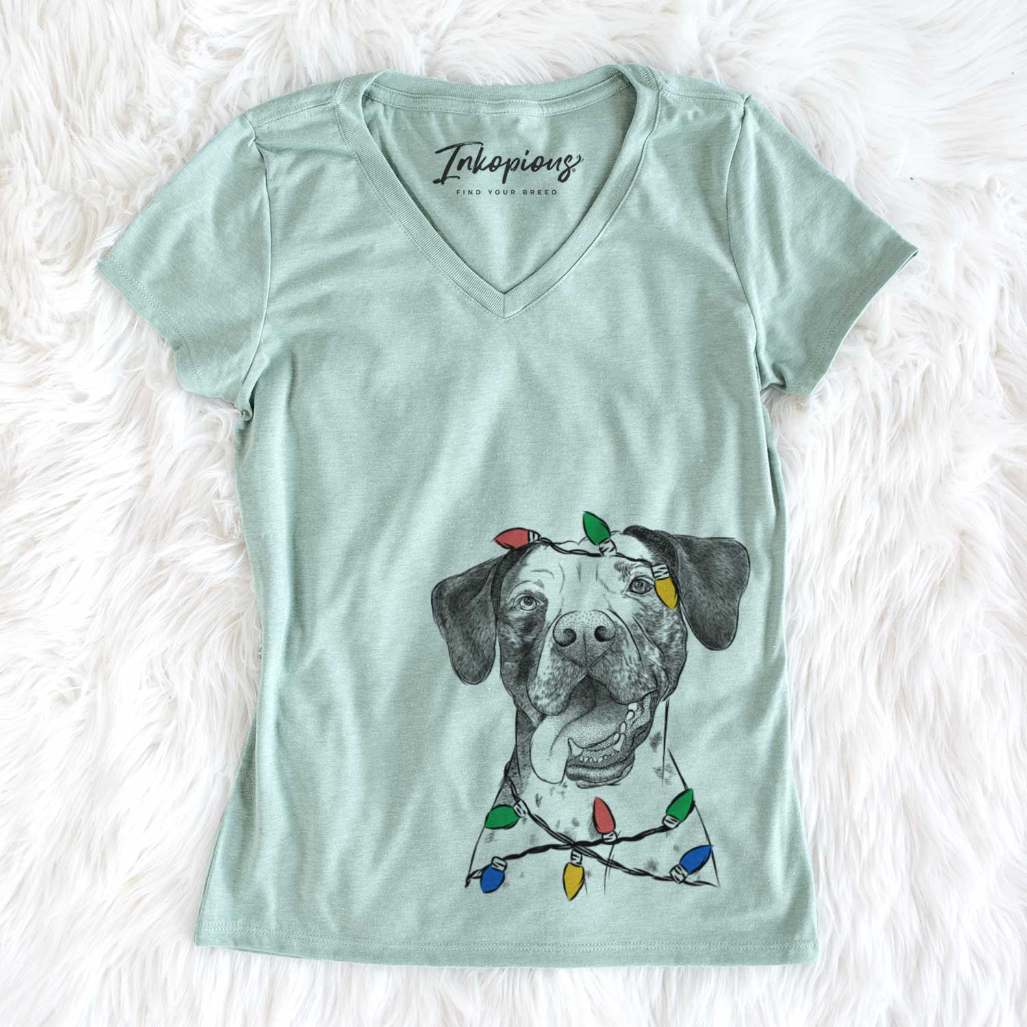 Christmas Lights Cola the Catahoula - Women's V-neck Shirt
