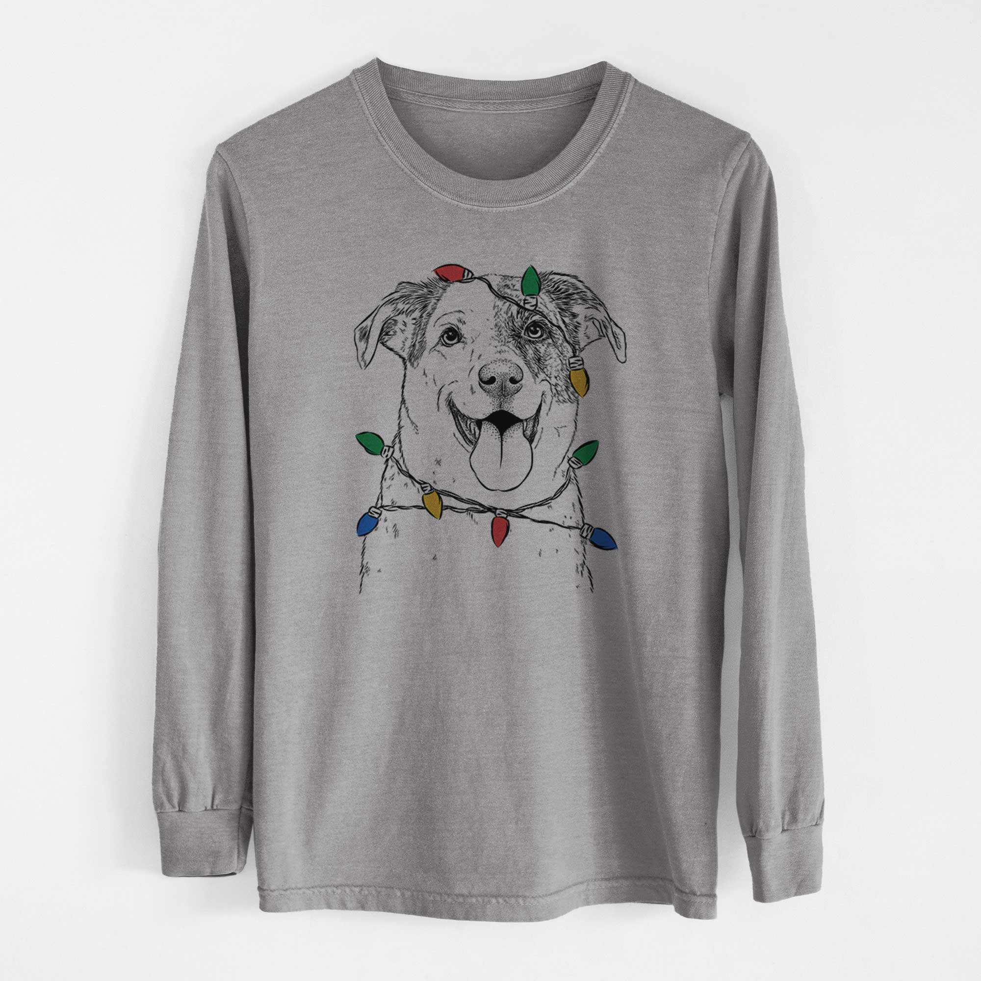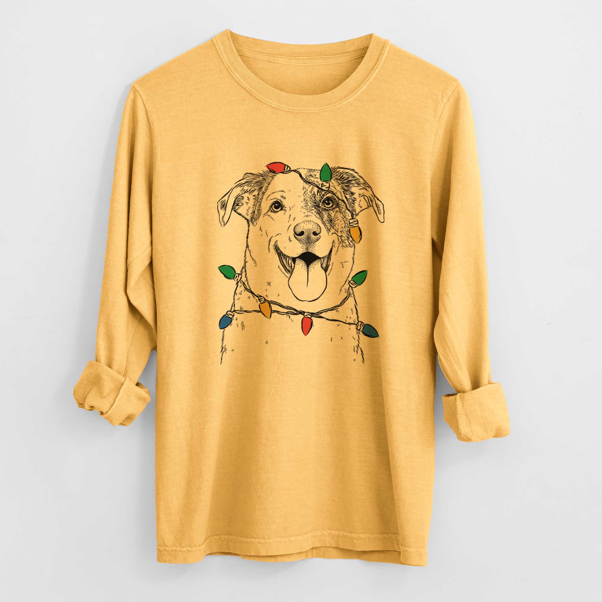 Christmas Lights Archer the Shepherd Mix - Heavyweight 100% Cotton Long Sleeve