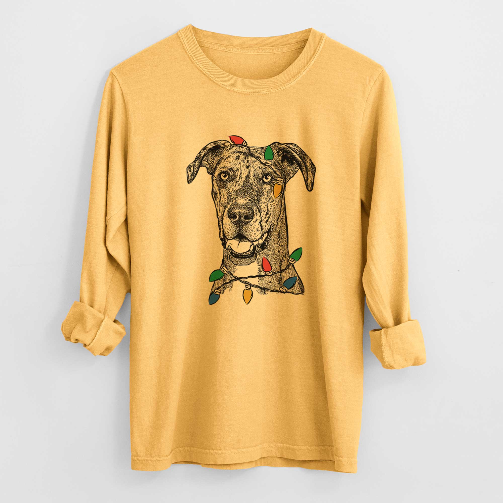 Christmas Lights Athena the Merle Great Dane - Heavyweight 100% Cotton Long Sleeve