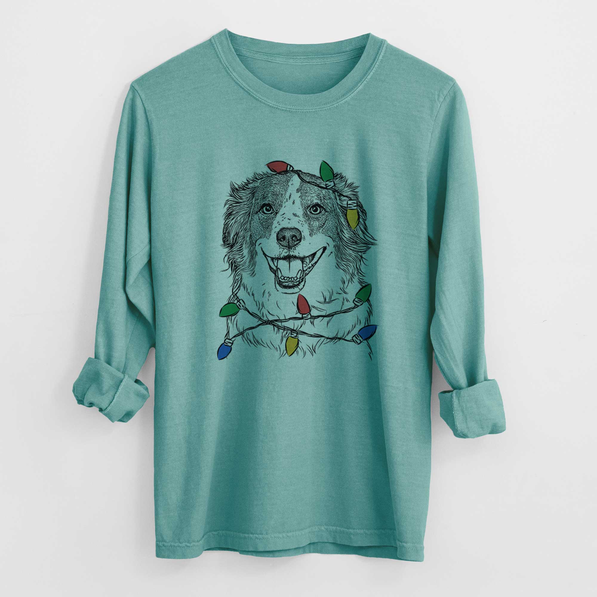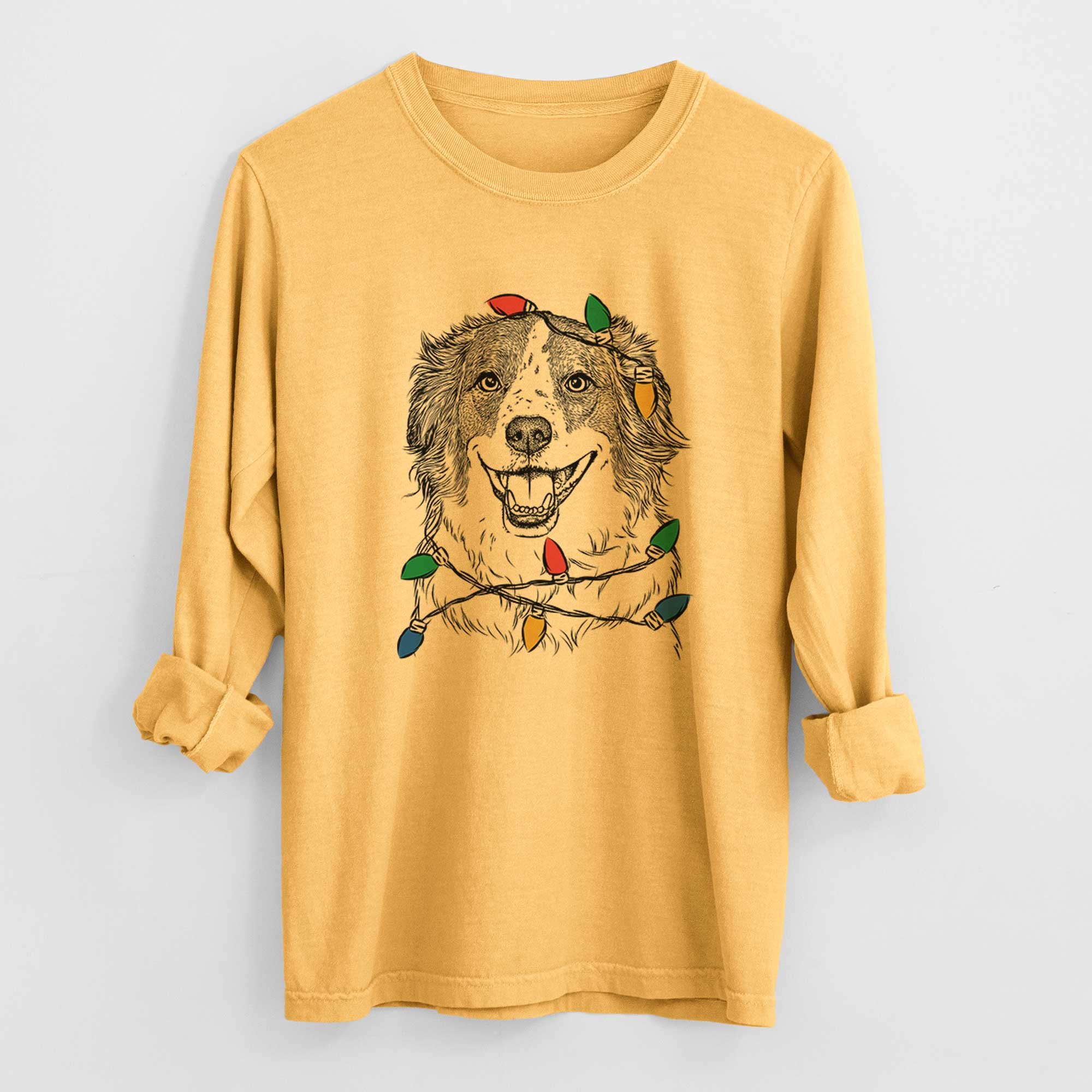 Christmas Lights Belle the Australian Shepherd Mix - Heavyweight 100% Cotton Long Sleeve