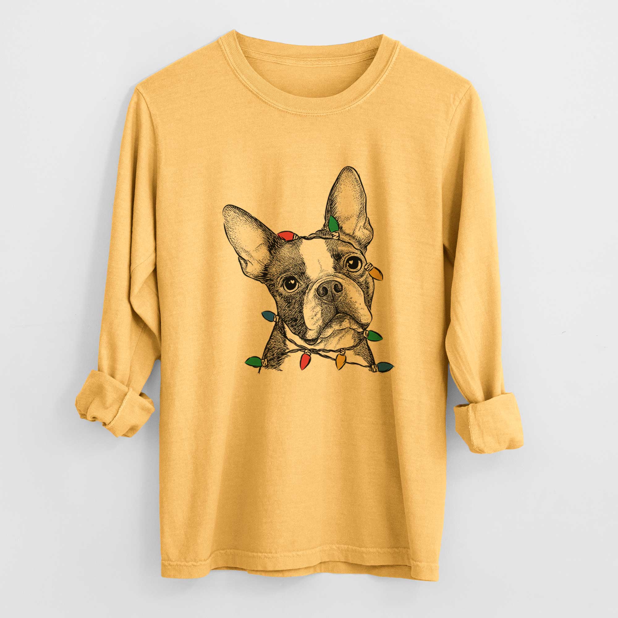 Christmas Lights Dee Dee the Boston Terrier - Heavyweight 100% Cotton Long Sleeve