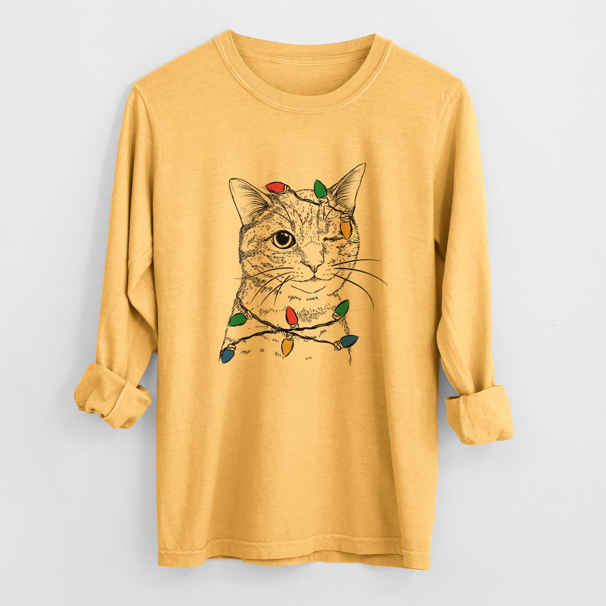 Christmas Lights Dexter the Domestic Shorthair - Heavyweight 100% Cotton Long Sleeve