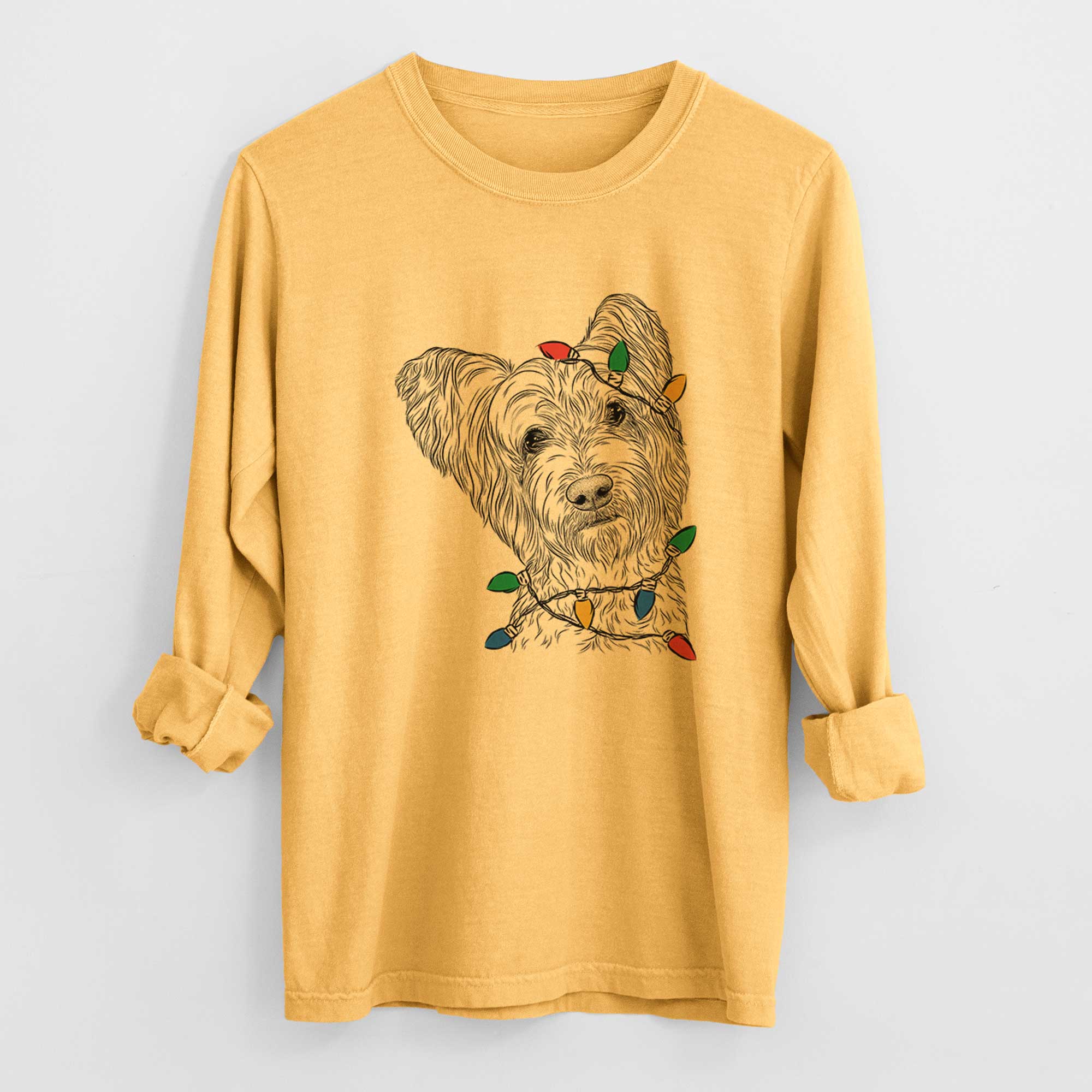Christmas Lights Dexter the Terrier Mix - Heavyweight 100% Cotton Long Sleeve