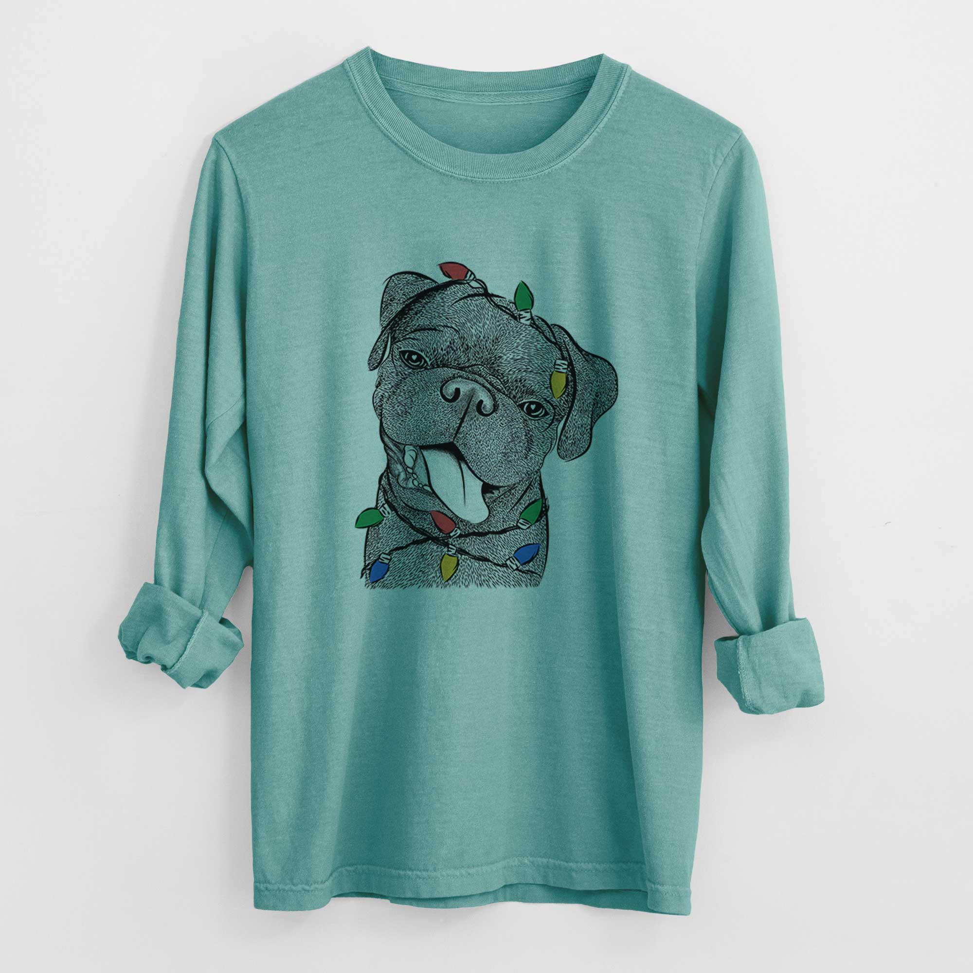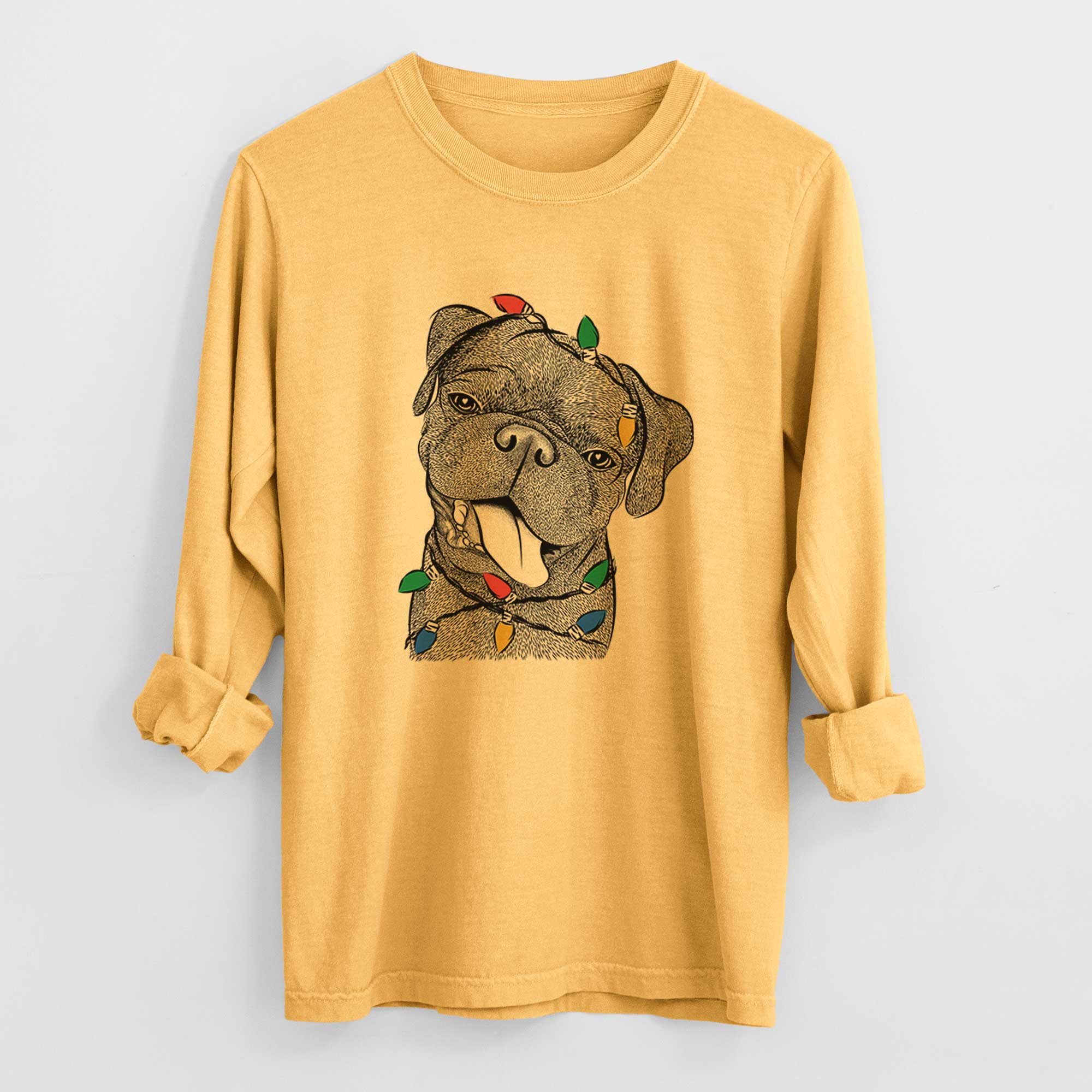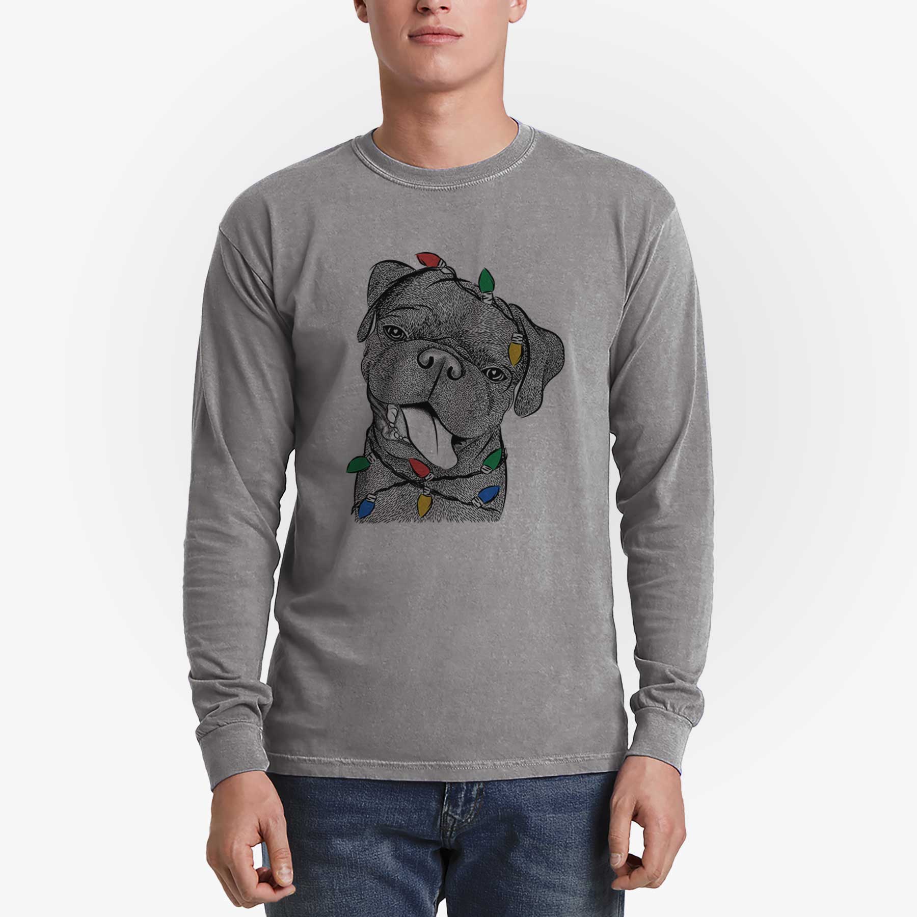 Christmas Lights Dudley Danger the Pug - Heavyweight 100% Cotton Long Sleeve