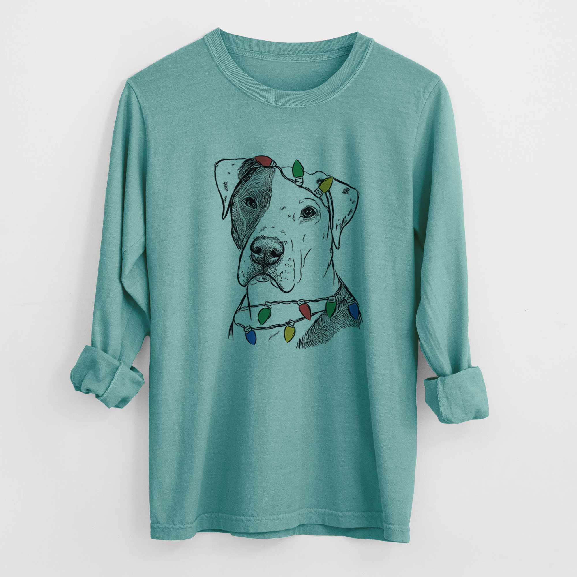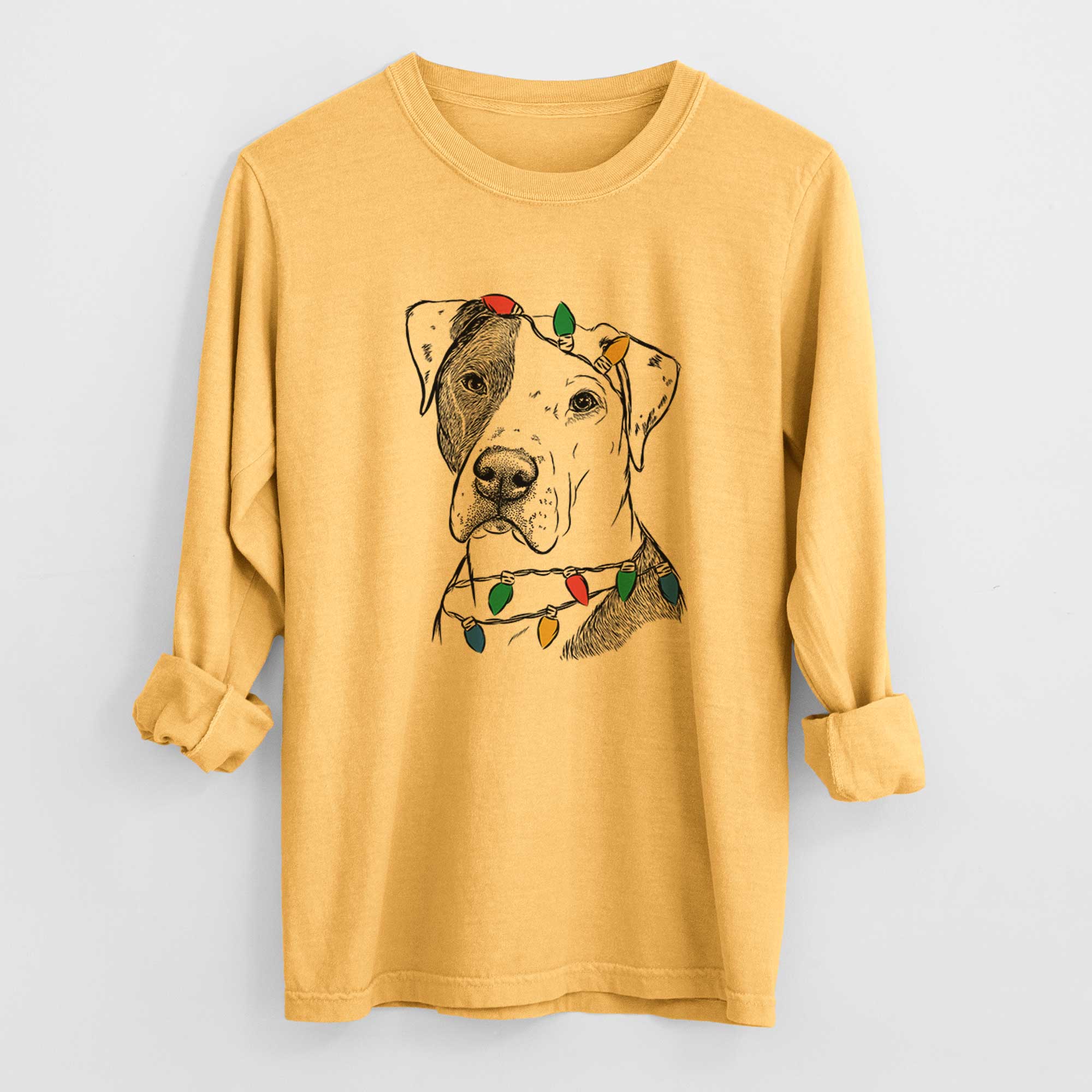 Christmas Lights Duke the American Staffordshire Terrier Mix - Heavyweight 100% Cotton Long Sleeve
