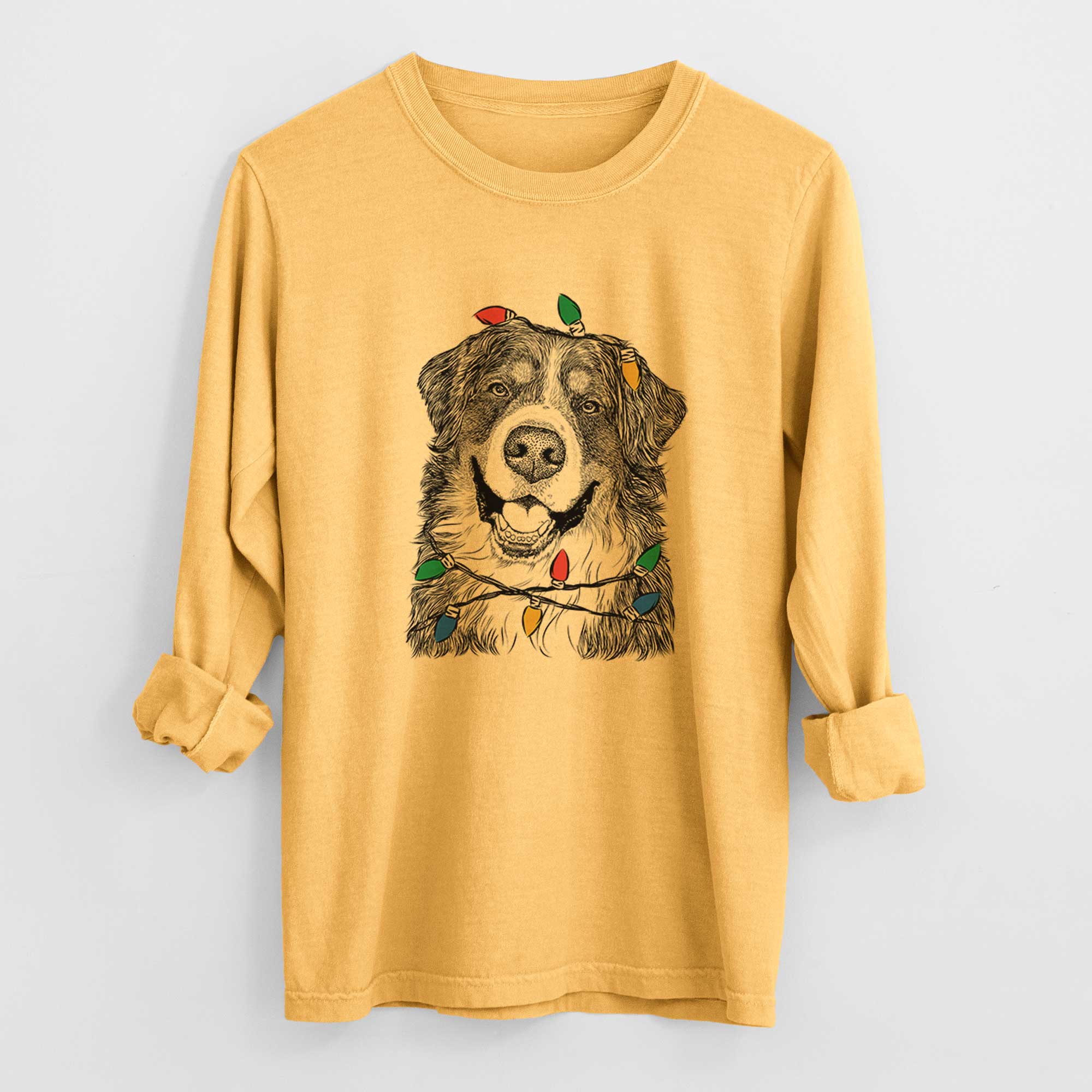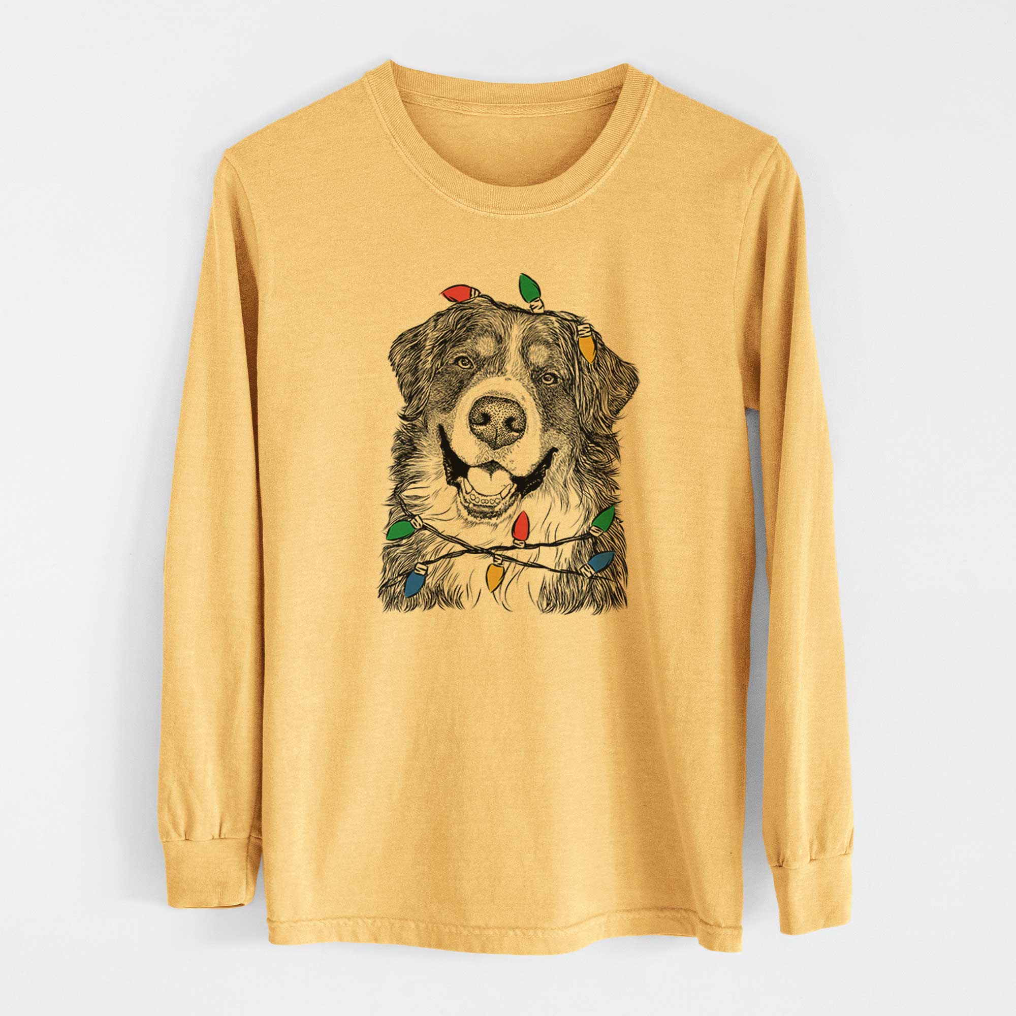 Christmas Lights Eiger the Bernese Mountain Dog - Heavyweight 100% Cotton Long Sleeve