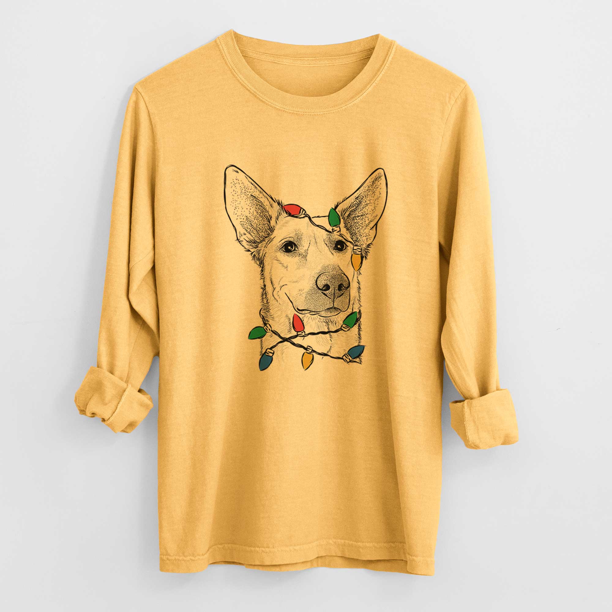 Christmas Lights Ember the Shepherd Mix - Heavyweight 100% Cotton Long Sleeve