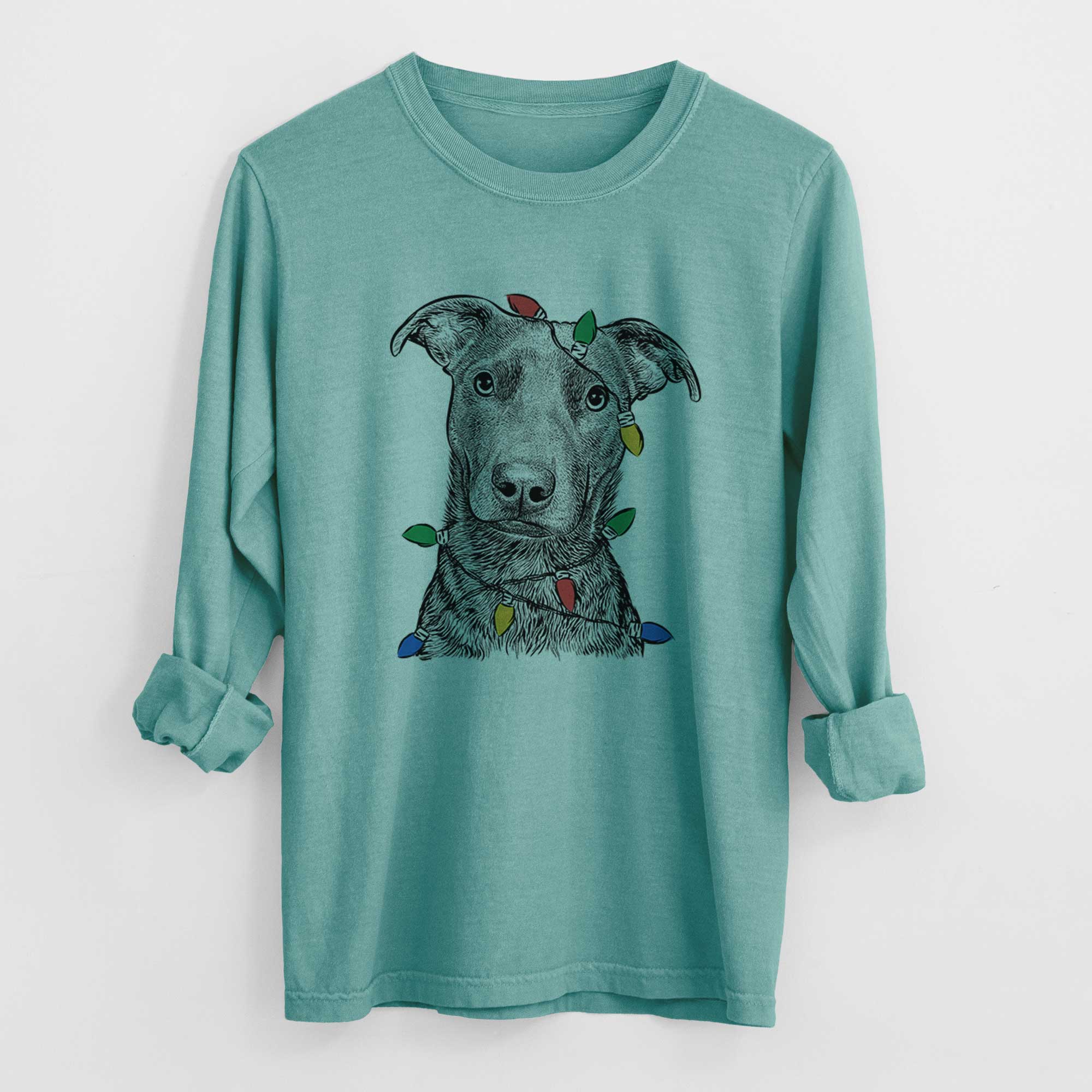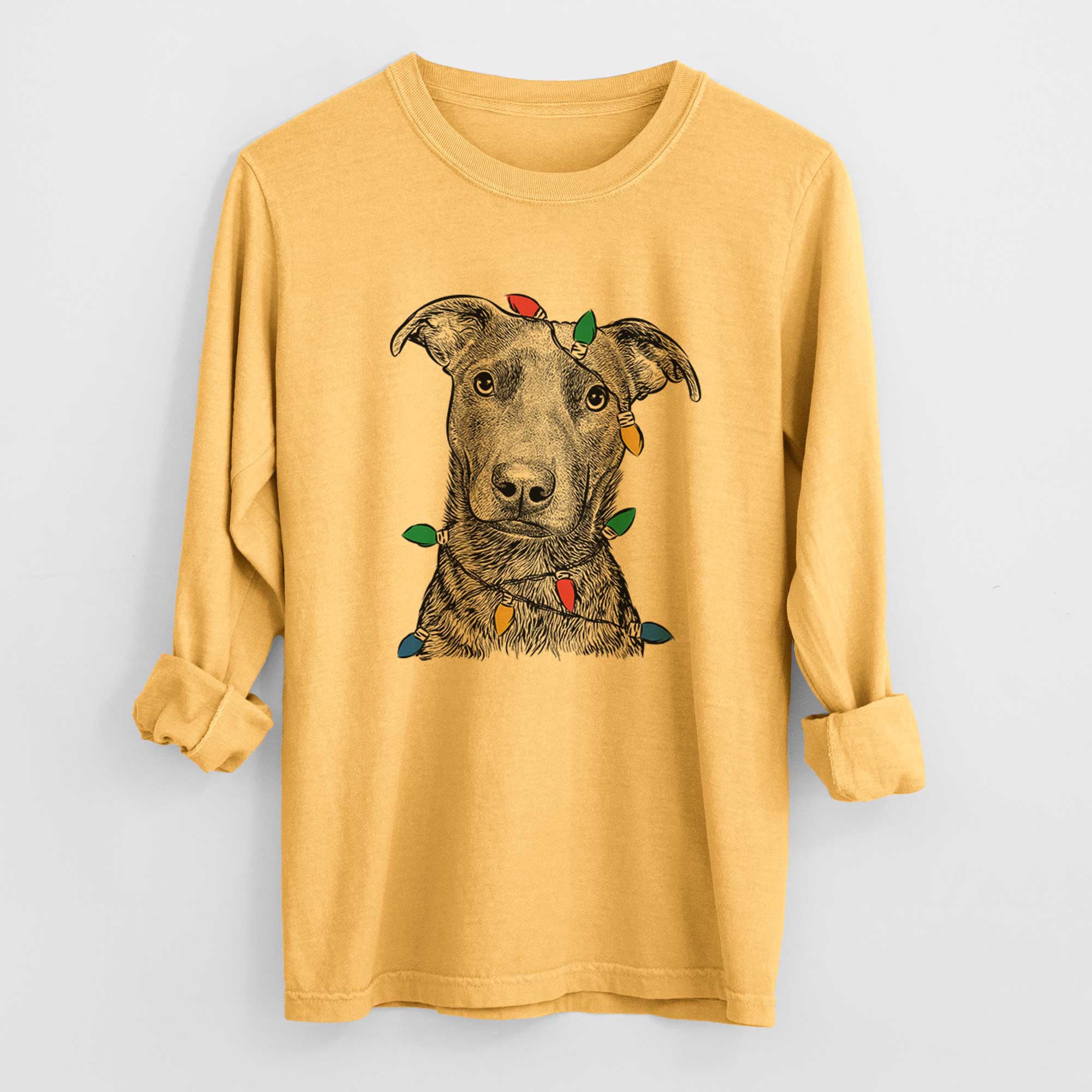 Christmas Lights Embyr the Mixed Breed - Heavyweight 100% Cotton Long Sleeve