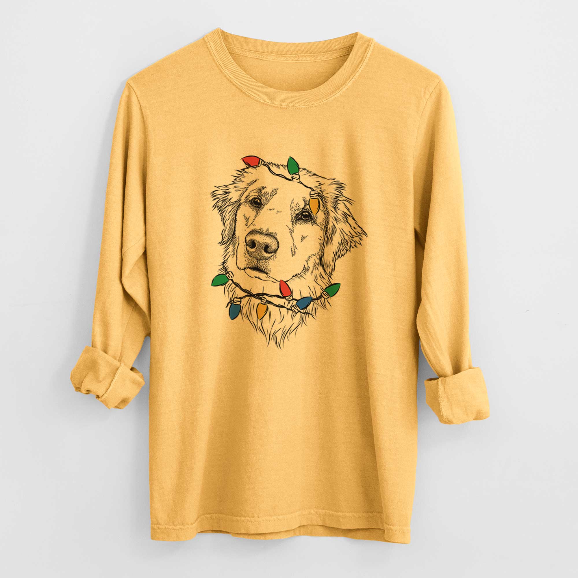 Christmas Lights Fiona the Golden Retriever - Heavyweight 100% Cotton Long Sleeve