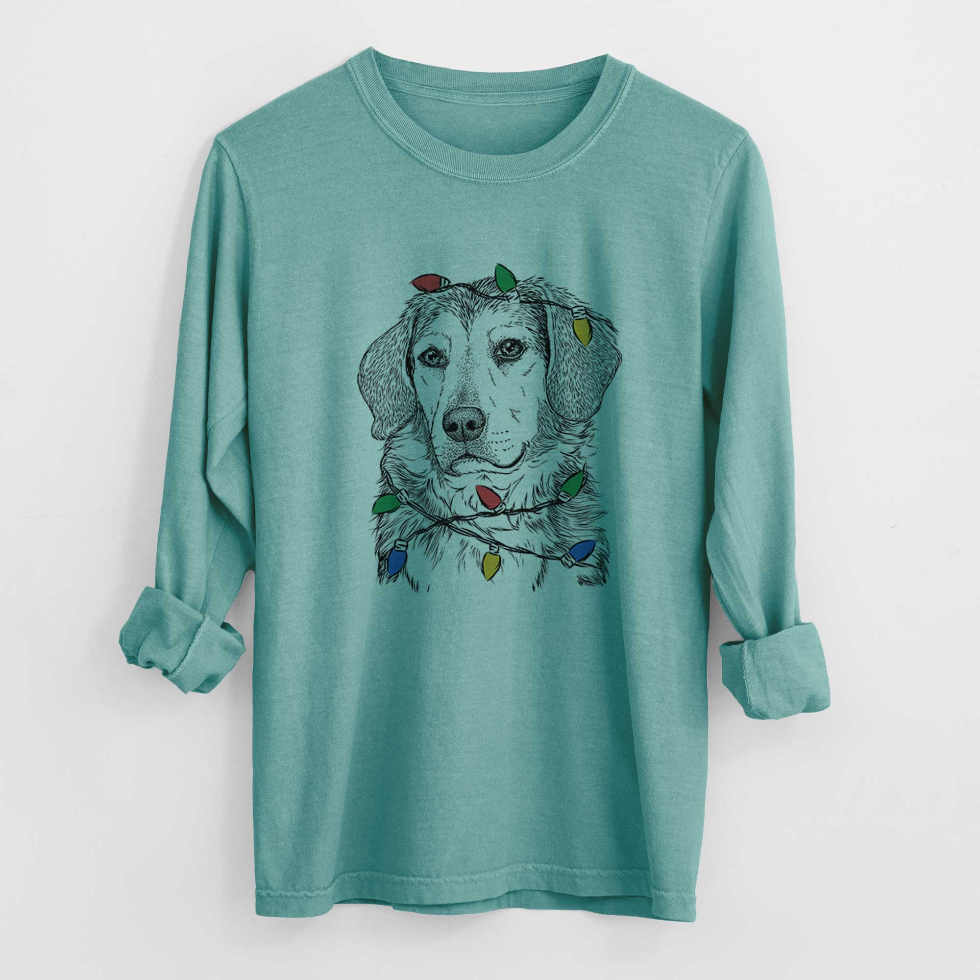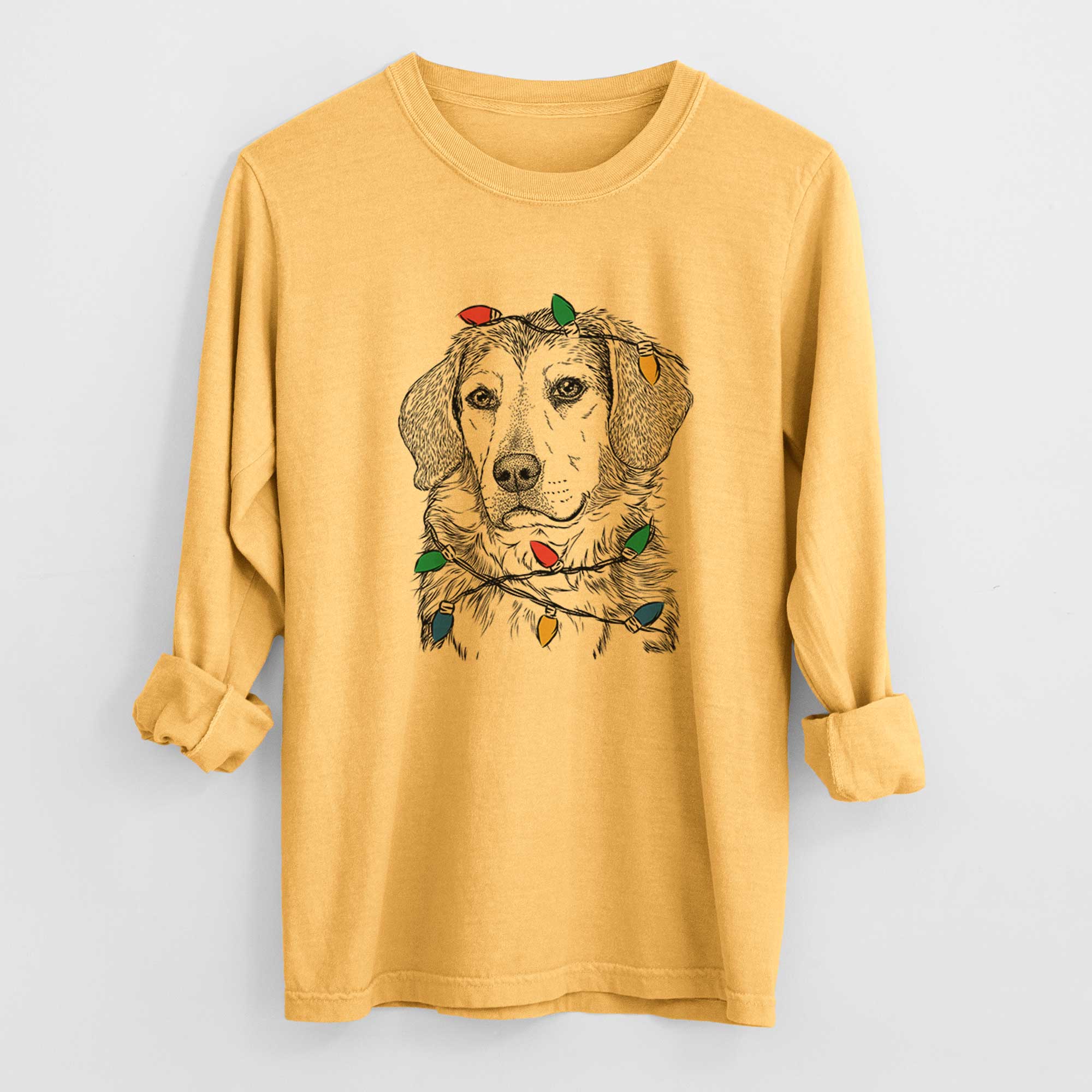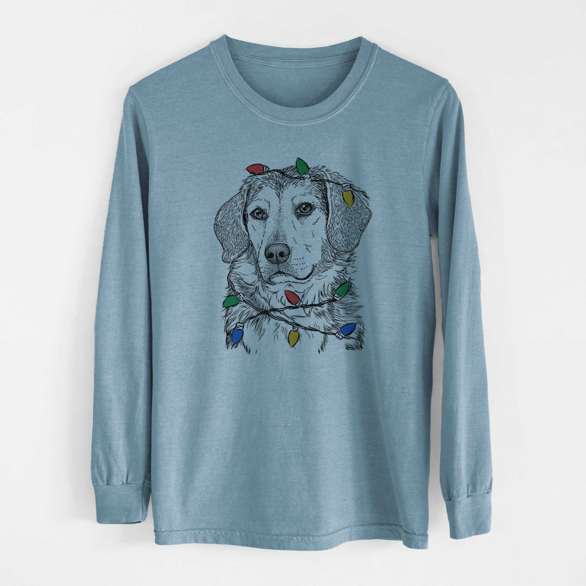 Christmas Lights Gunner the Beagle Mix - Heavyweight 100% Cotton Long Sleeve