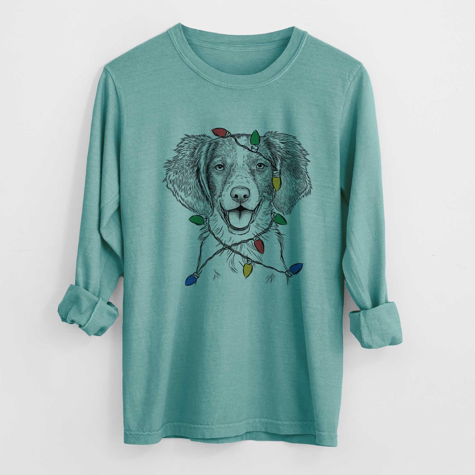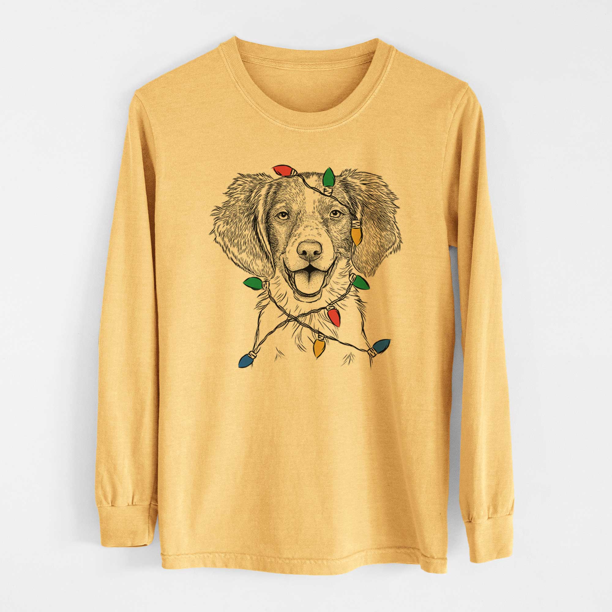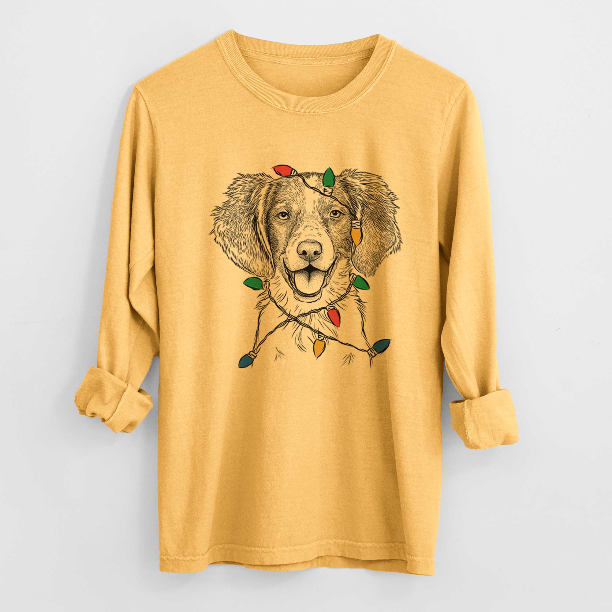 Christmas Lights Happy Holly the Brittany Spaniel - Heavyweight 100% Cotton Long Sleeve