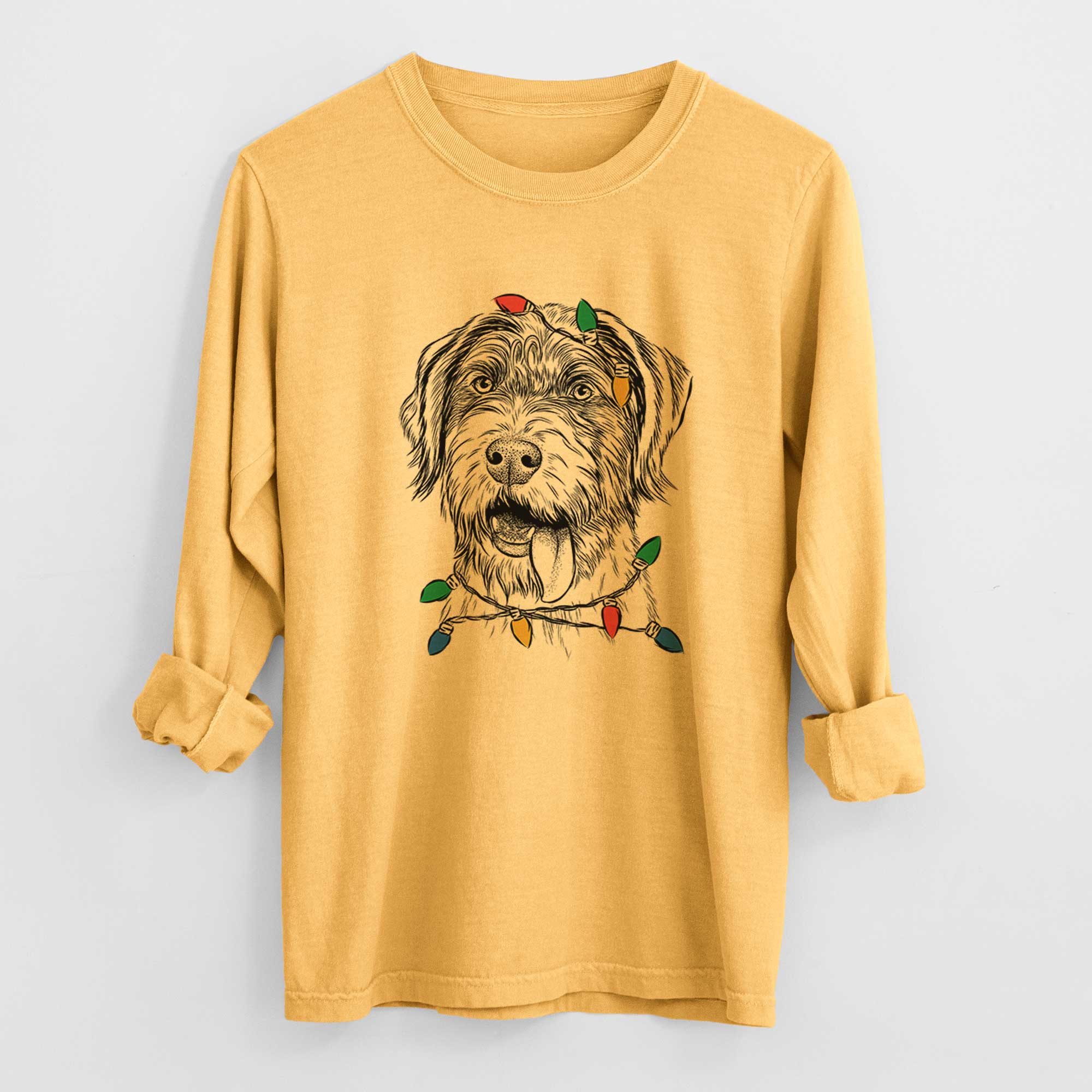Christmas Lights Hazel the German Wirehaired Pointer Mix - Heavyweight 100% Cotton Long Sleeve