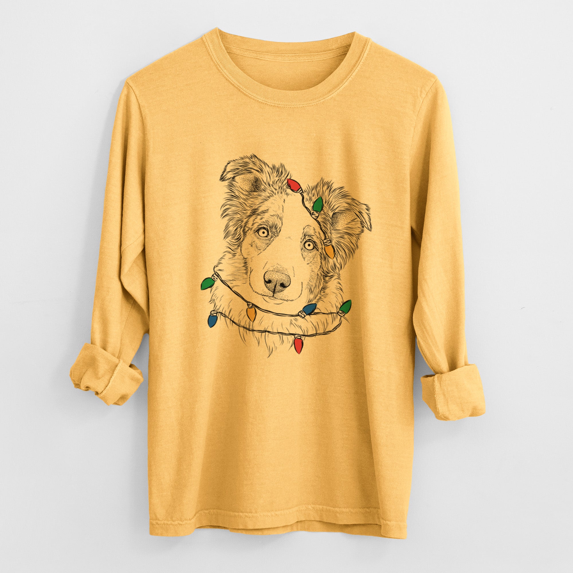 Christmas Lights HoneyBee the Miniature Australian Shepherd - Heavyweight 100% Cotton Long Sleeve