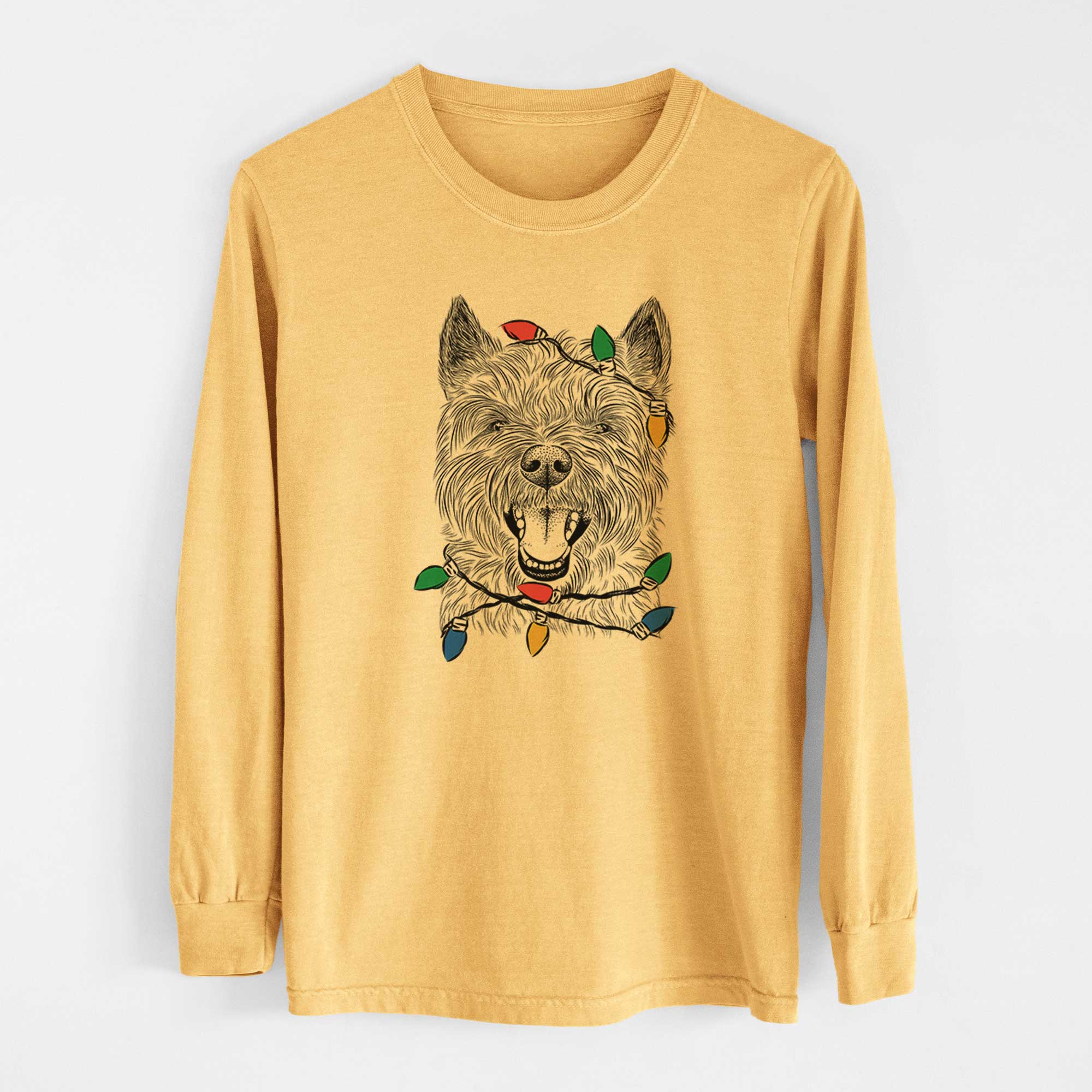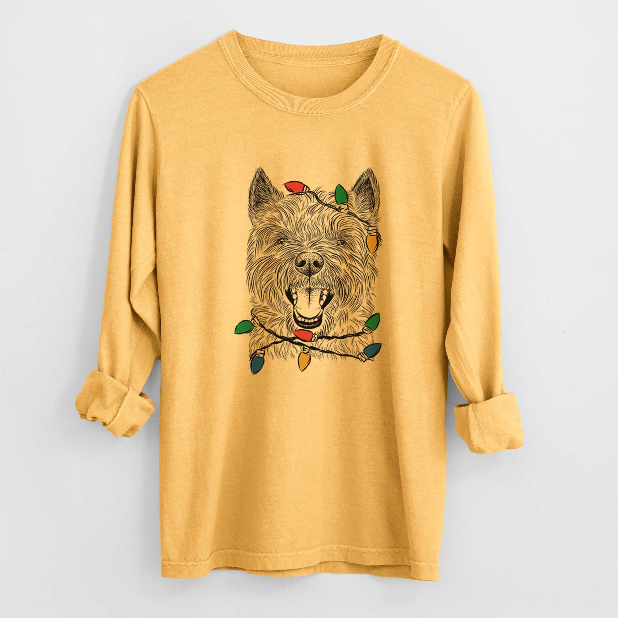 Christmas Lights Jeff the Cairn Terrier - Heavyweight 100% Cotton Long Sleeve