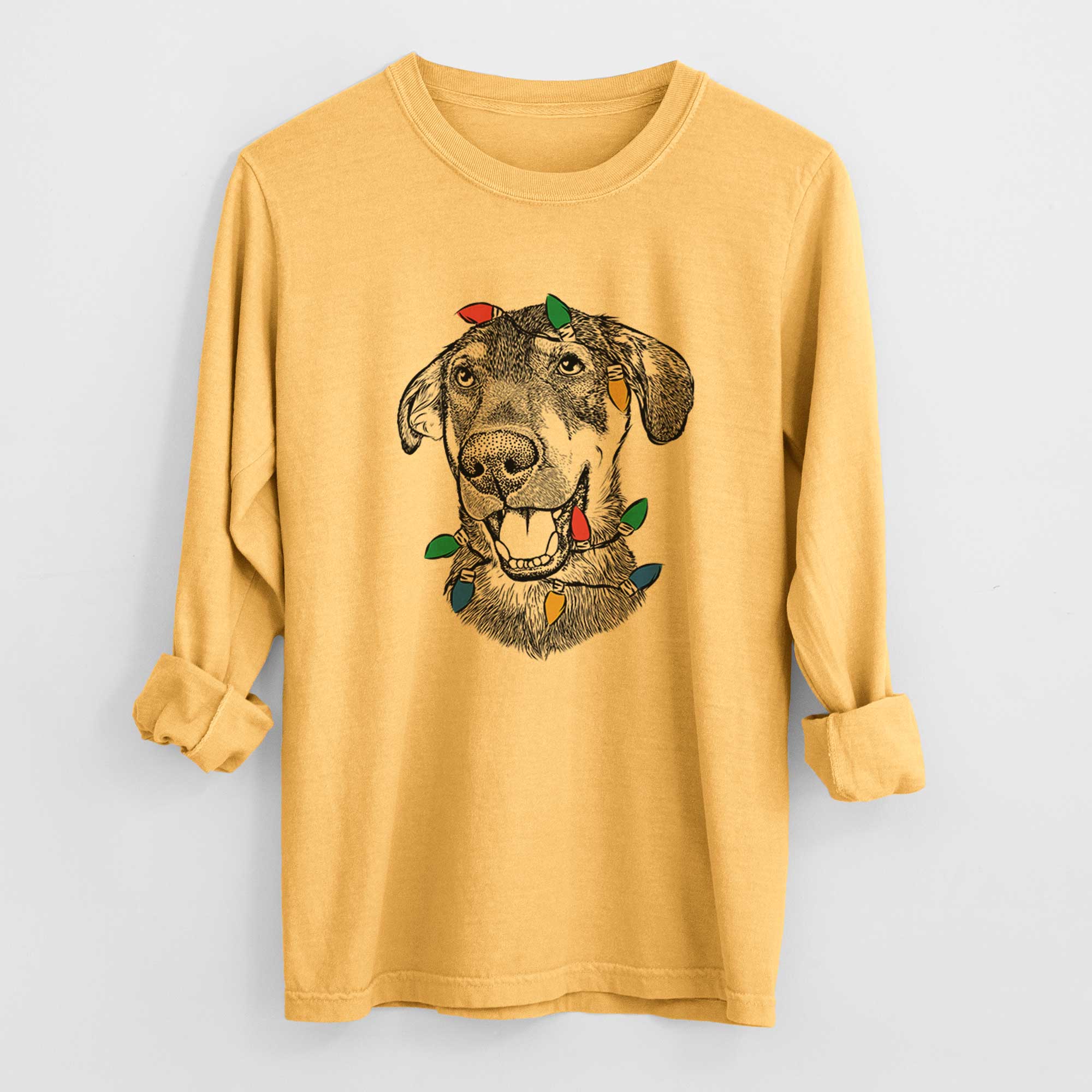 Christmas Lights Jet the Mixed Breed - Heavyweight 100% Cotton Long Sleeve