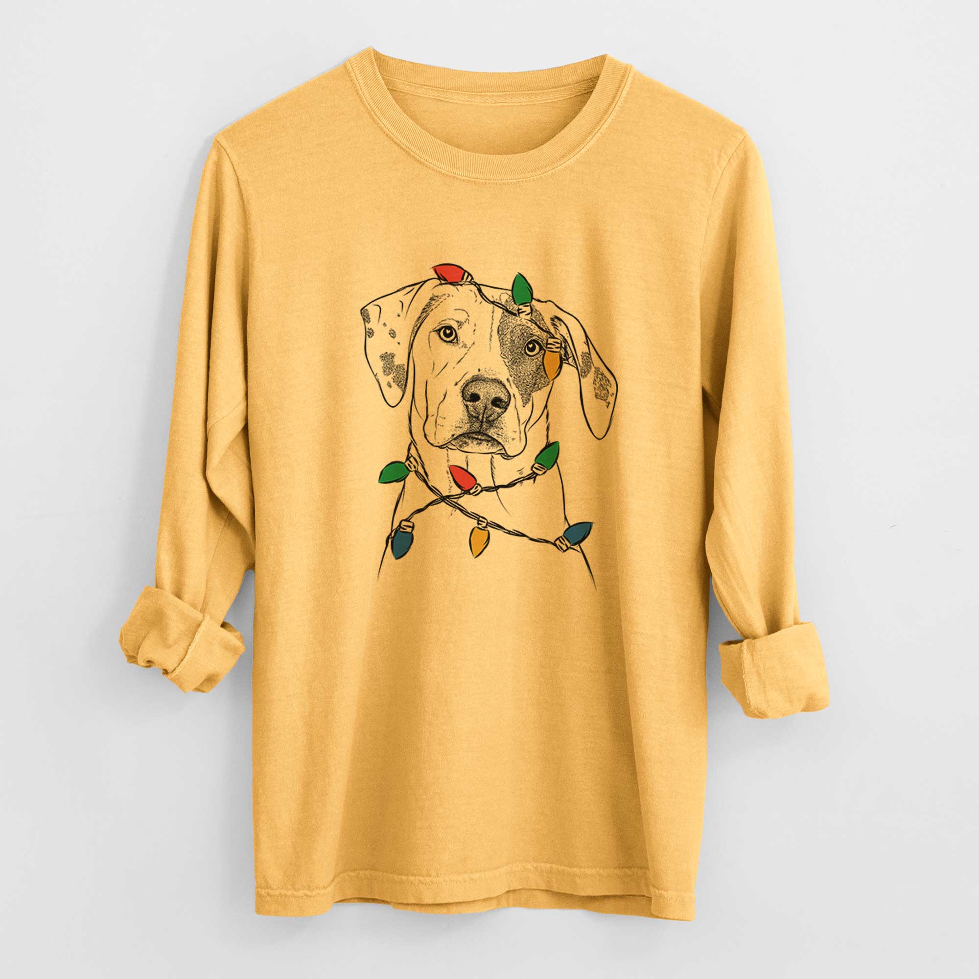 Christmas Lights Julio the Dogo Argentino Mix - Heavyweight 100% Cotton Long Sleeve