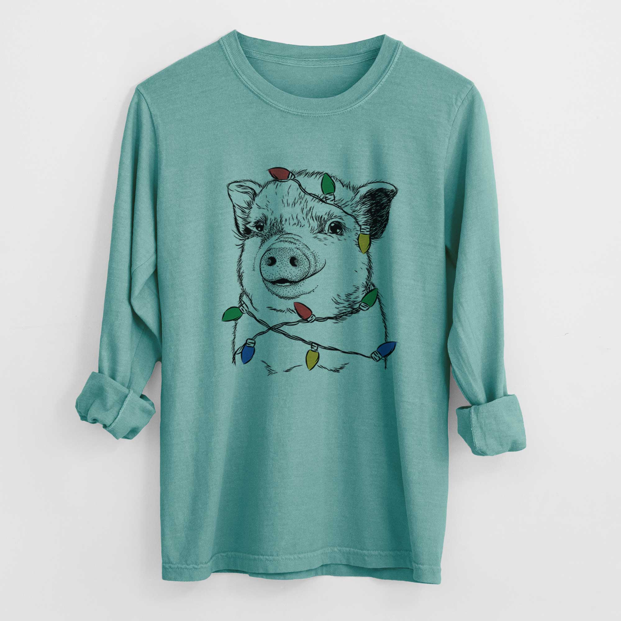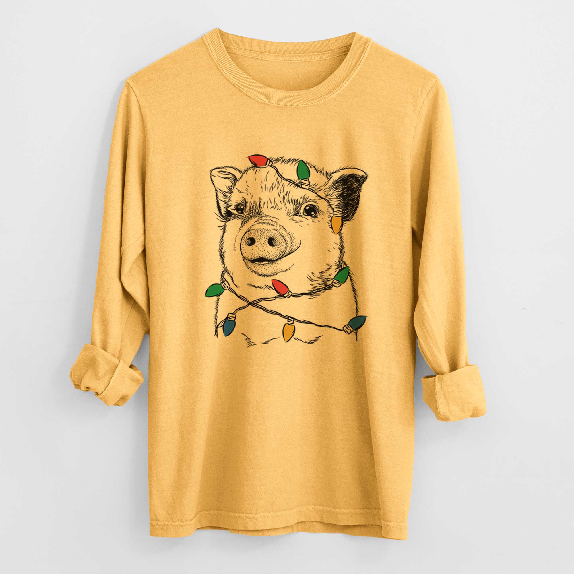 Christmas Lights Kevin the Spotted Pig - Heavyweight 100% Cotton Long Sleeve
