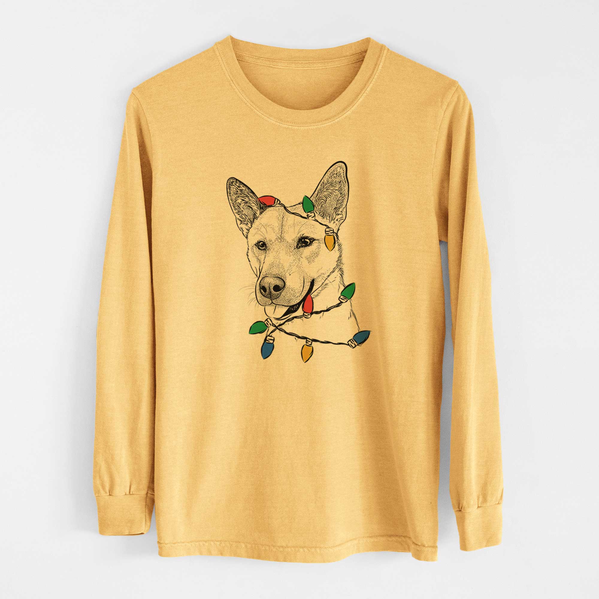 Christmas Lights Kulfi the Jindo Shiba Inu Mix - Heavyweight 100% Cotton Long Sleeve