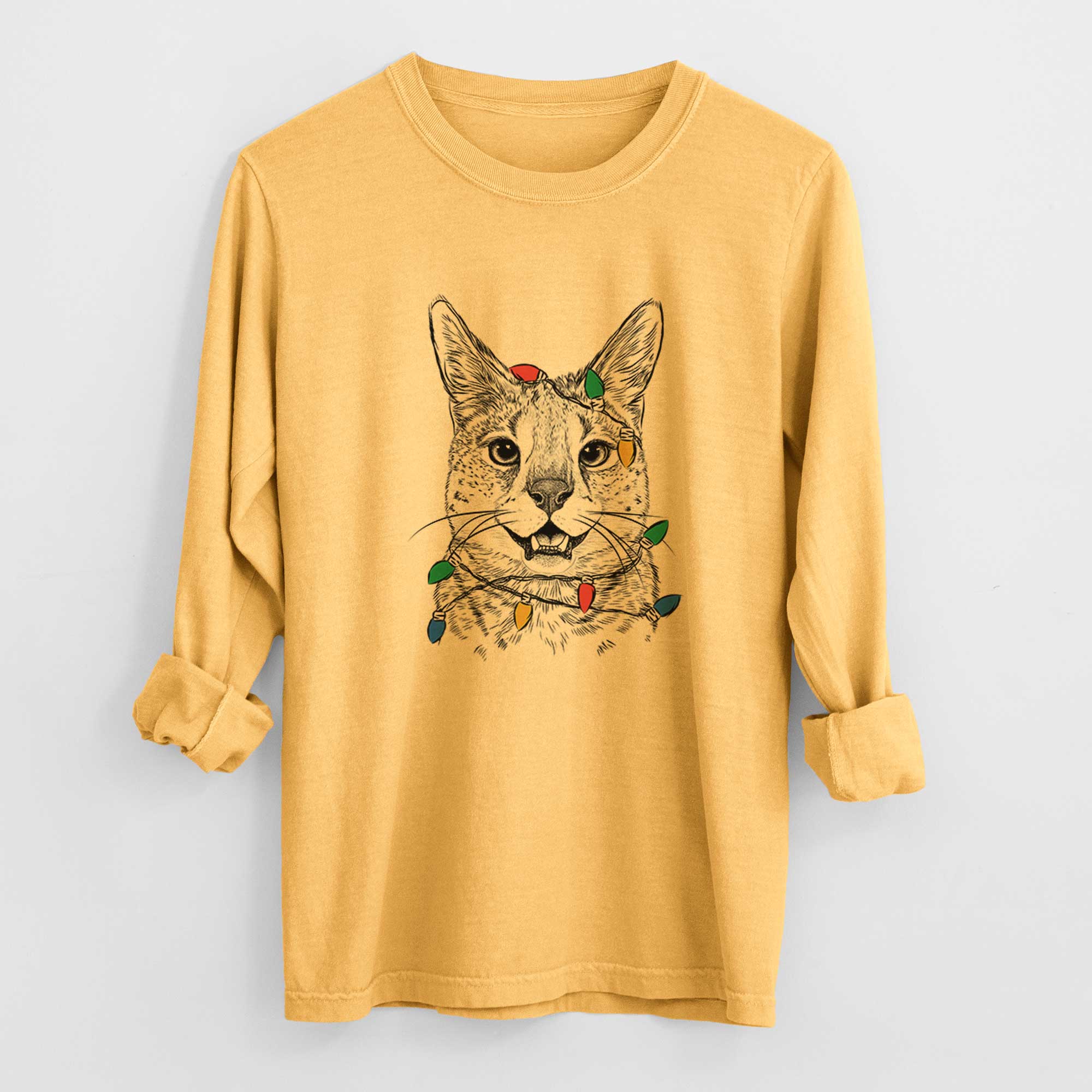Christmas Lights Lucky the Serval Cat - Heavyweight 100% Cotton Long Sleeve