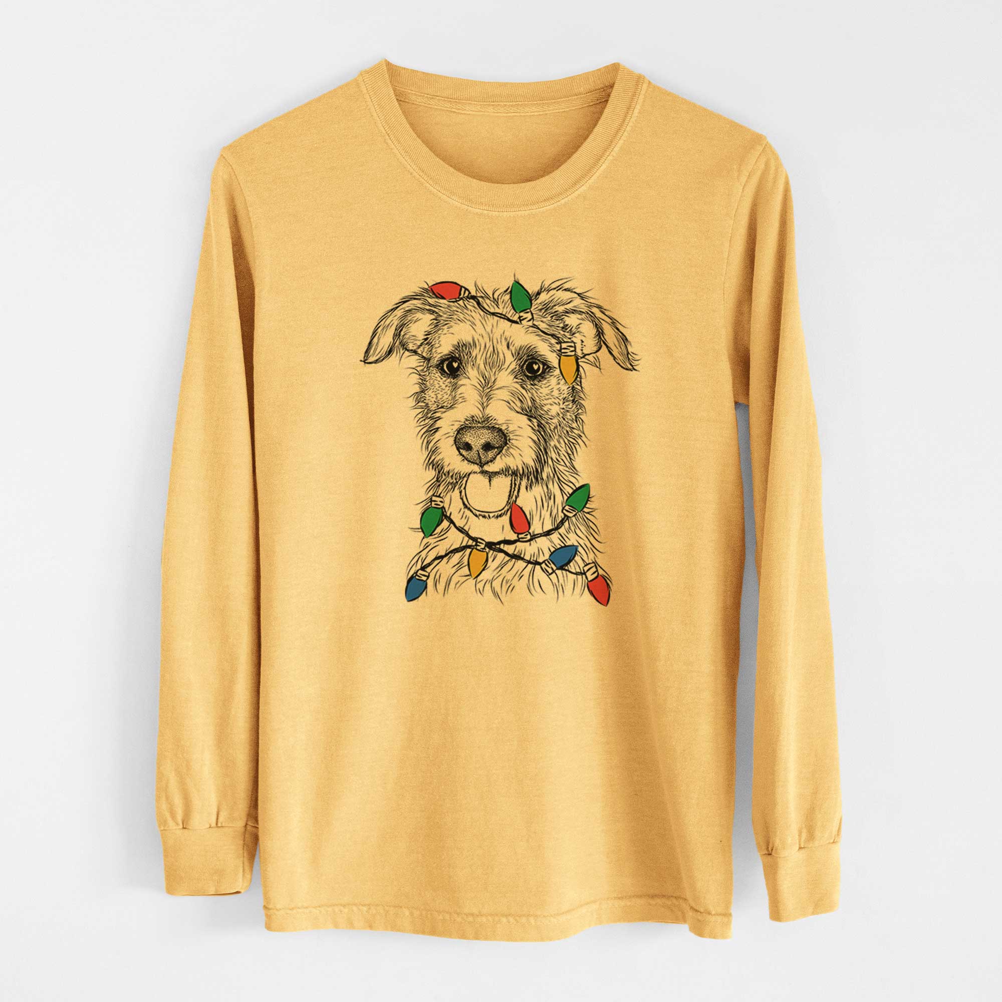 Christmas Lights Maggie the Terrier Mix - Heavyweight 100% Cotton Long Sleeve