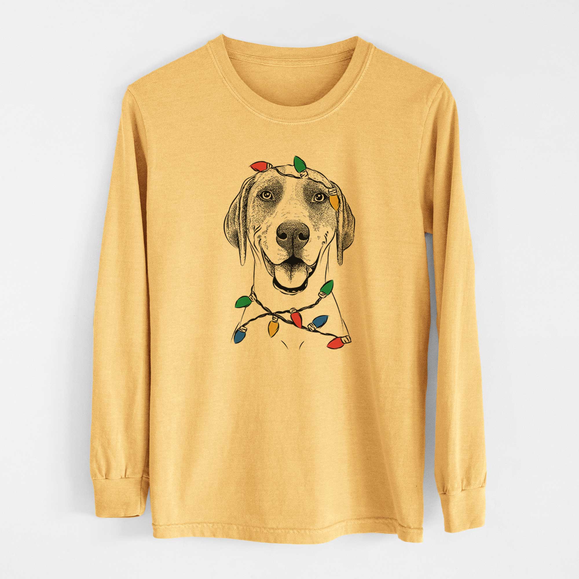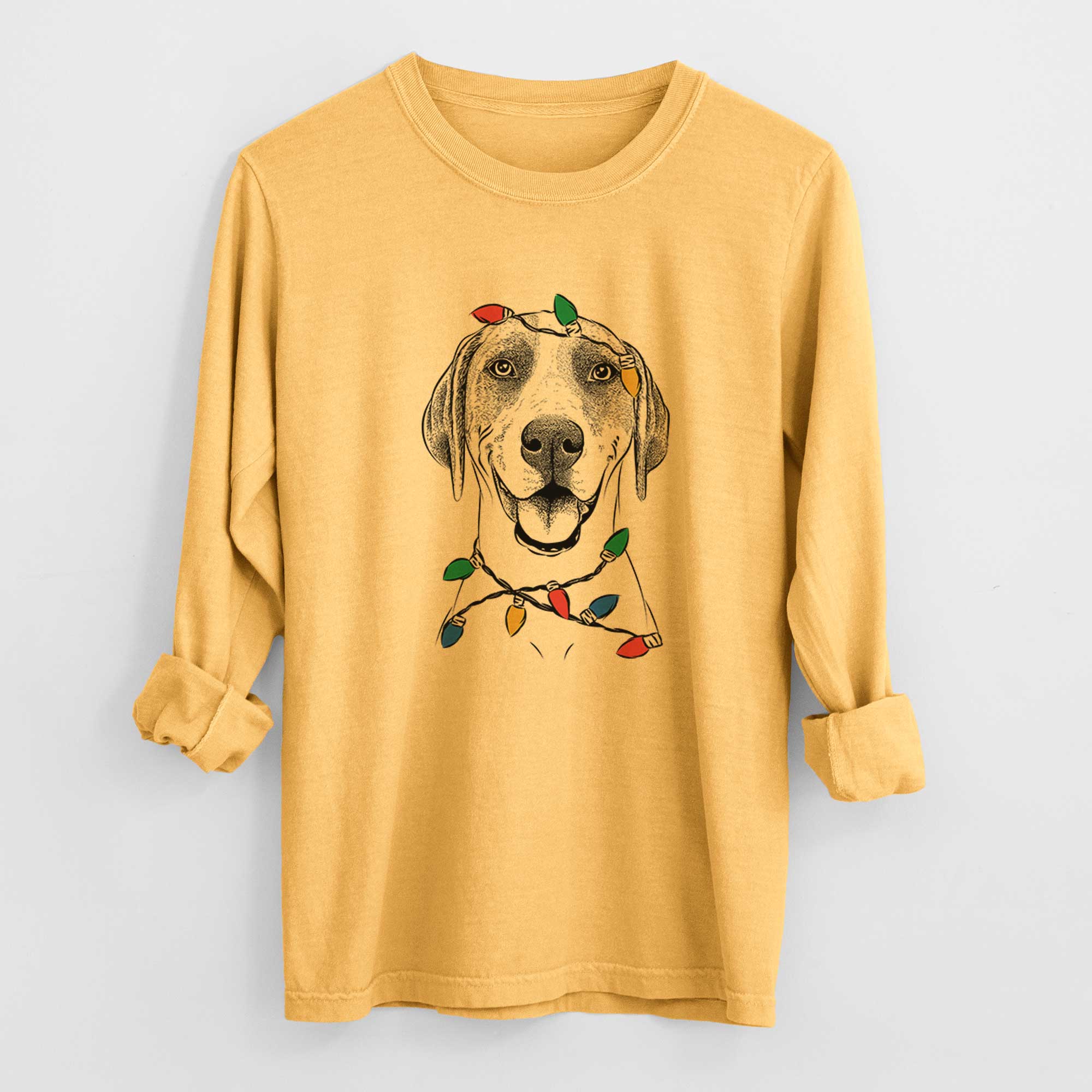 Christmas Lights Maggie the Treeing Walker Coonhound - Heavyweight 100% Cotton Long Sleeve