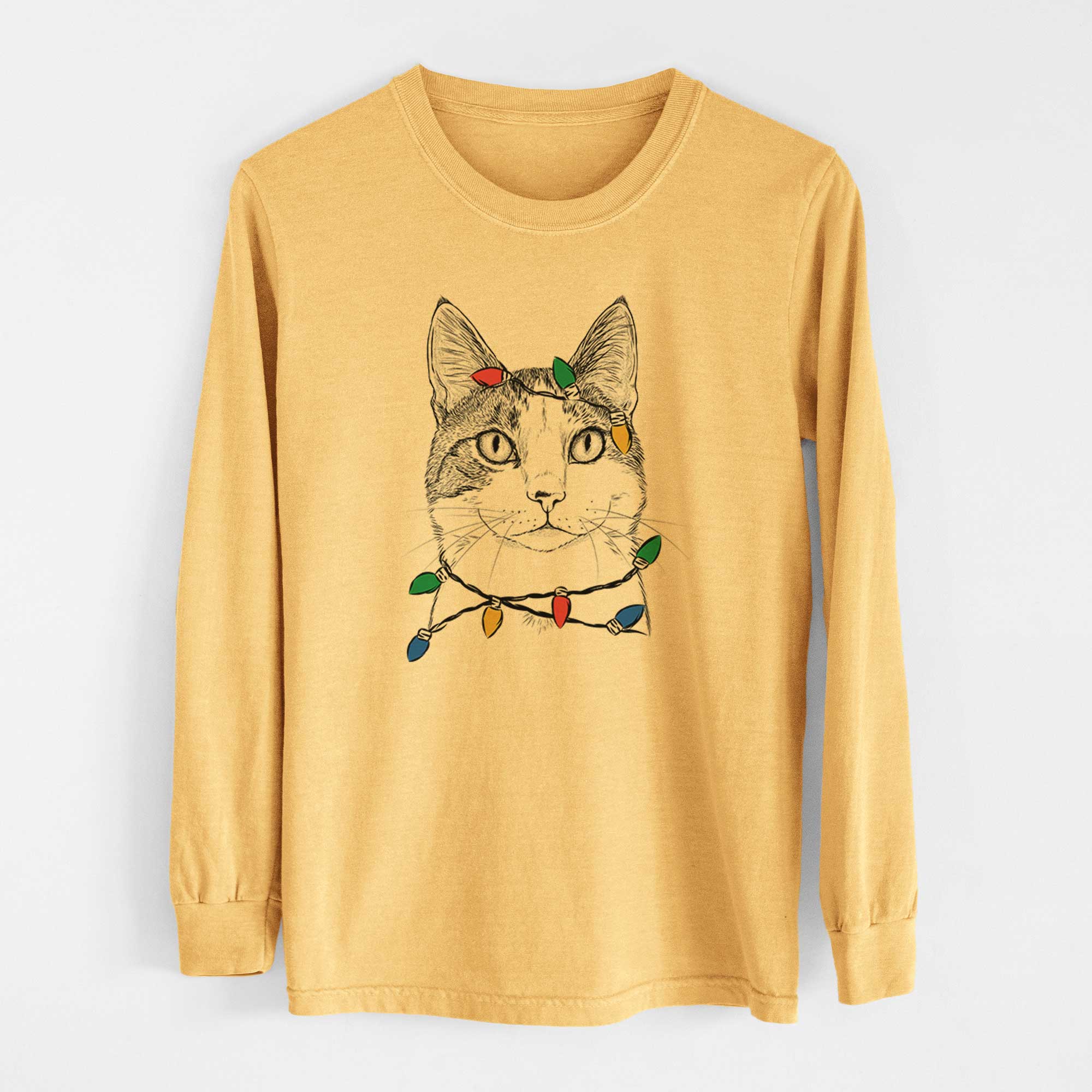 Christmas Lights Mini Griffin the Domestic Shorthair Cat - Heavyweight 100% Cotton Long Sleeve