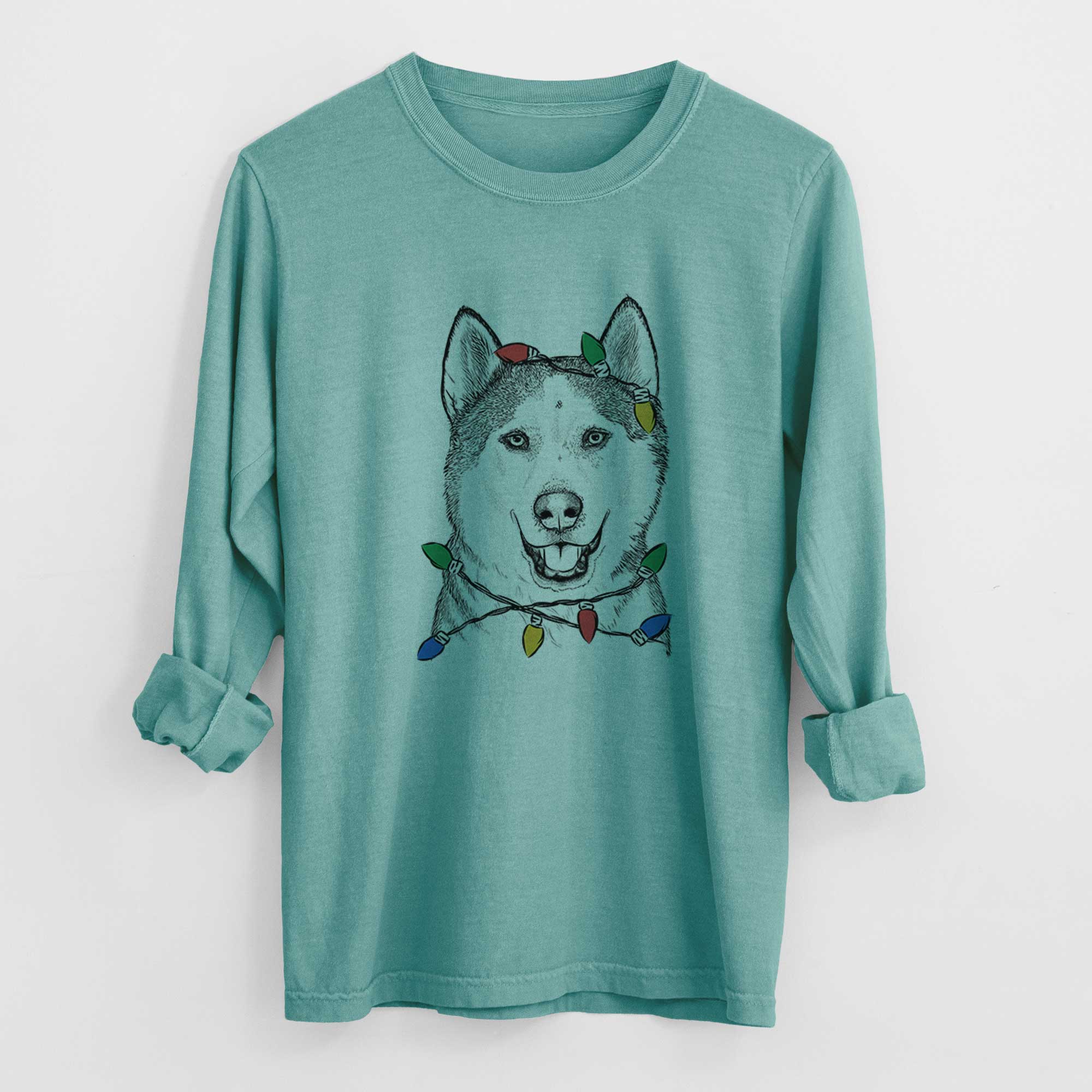 Christmas Lights Nika the Siberian Husky - Heavyweight 100% Cotton Long Sleeve