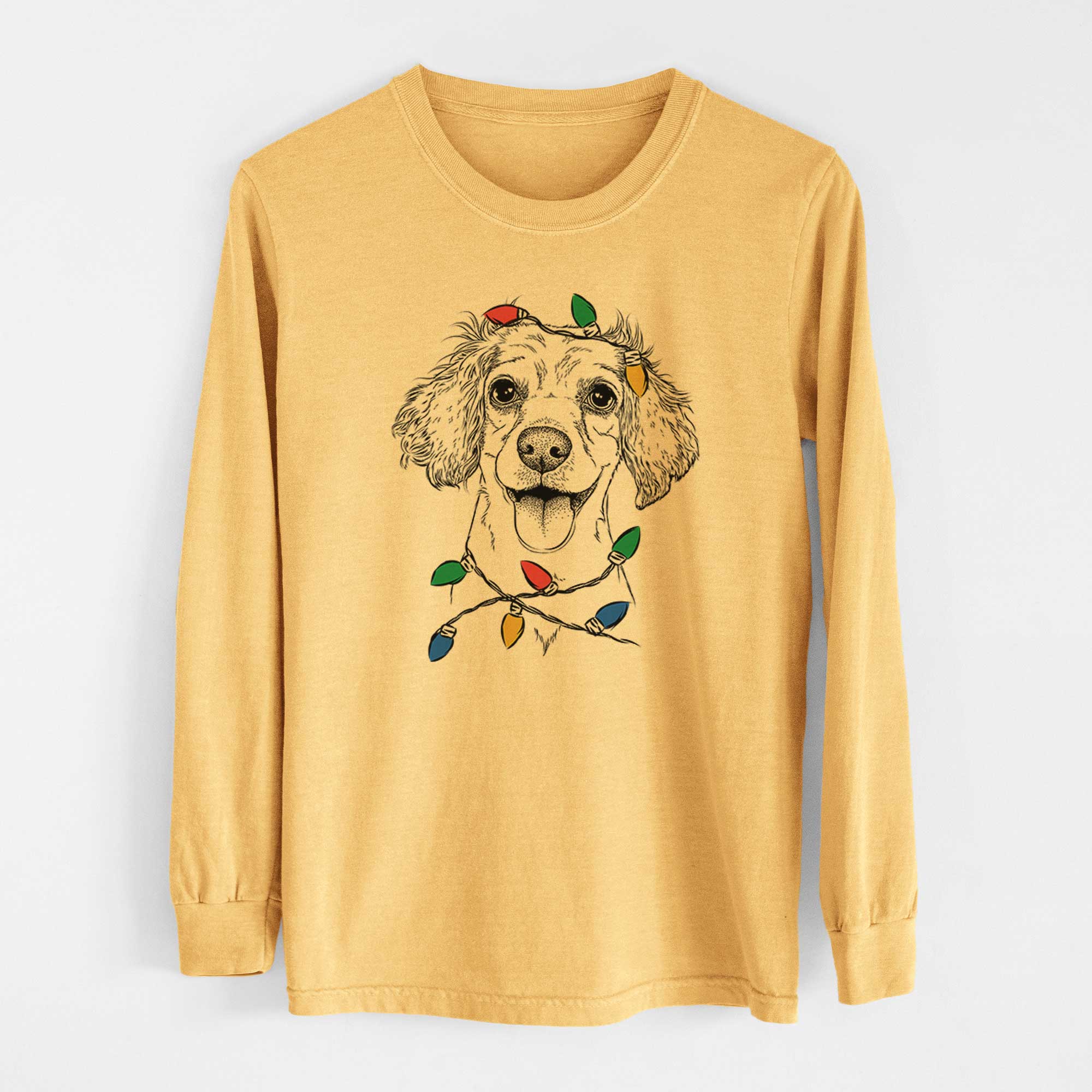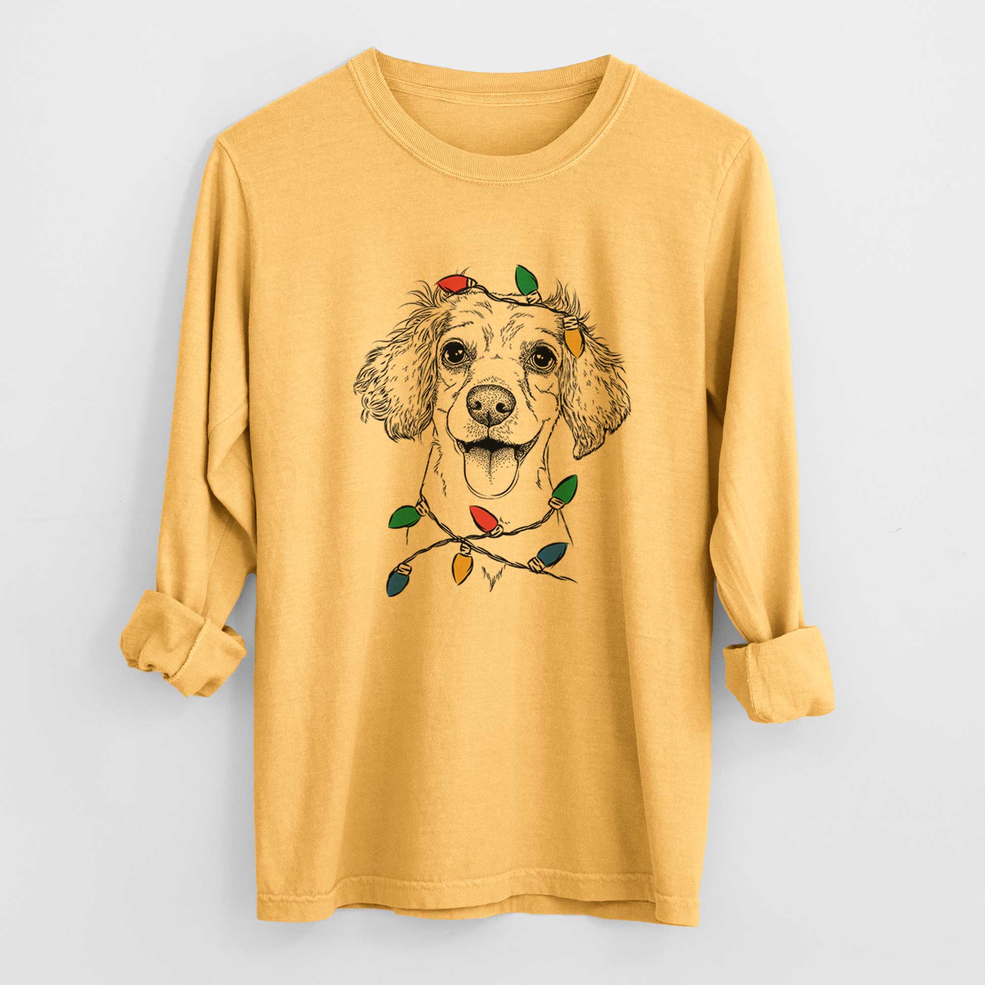 Christmas Lights Piglet the Dachshund Mix - Heavyweight 100% Cotton Long Sleeve