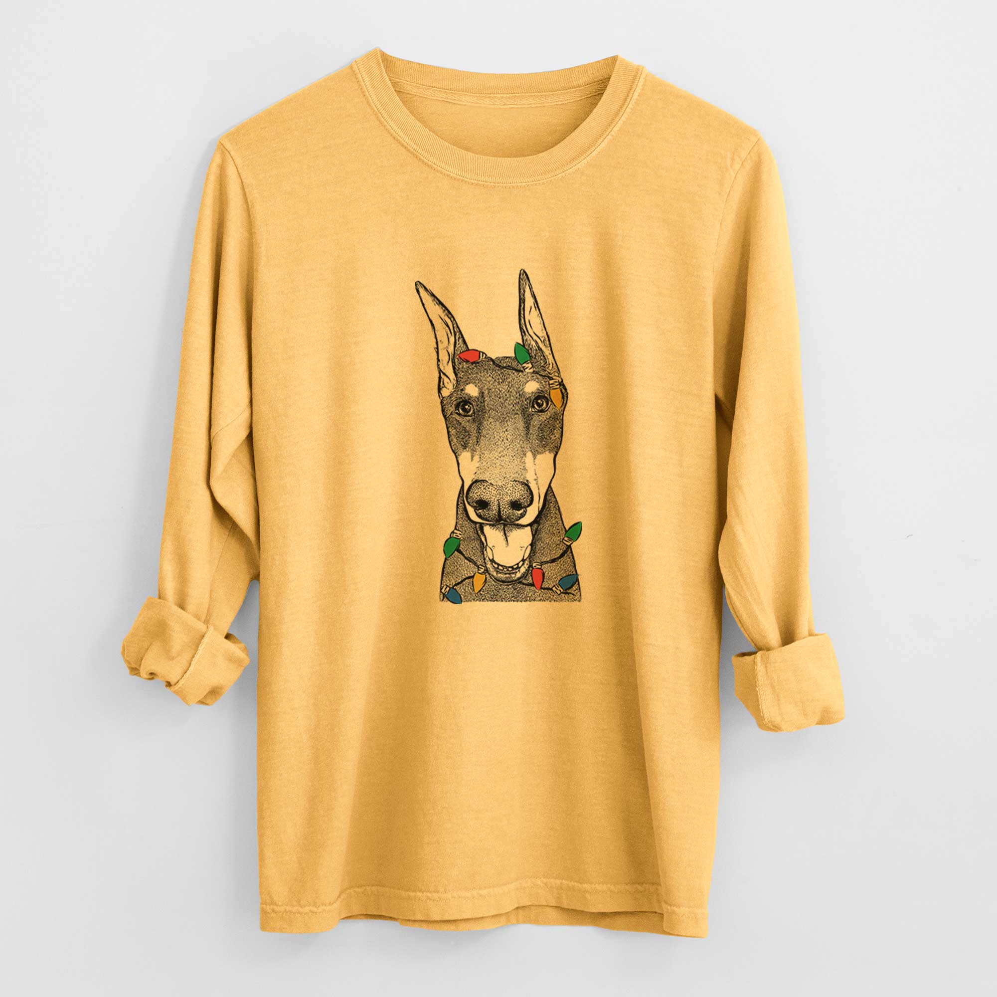 Christmas Lights Sir Duke the Doberman Pinscher - Heavyweight 100% Cotton Long Sleeve